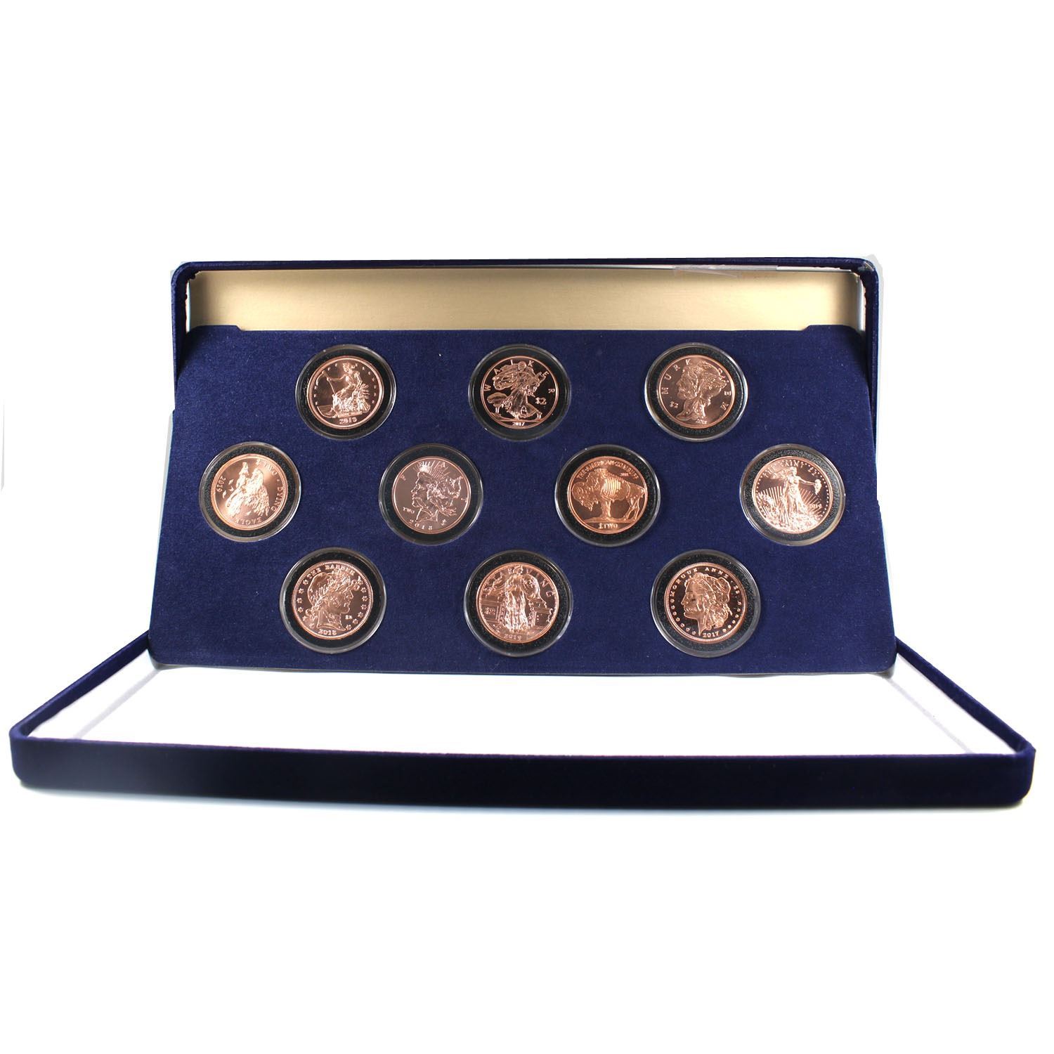 2017-2019 Zombucks 1oz .999 Fine Copper Rounds Encapsulated in Deluxe Blue Felt Display Case. You will receive 10 unique designs.