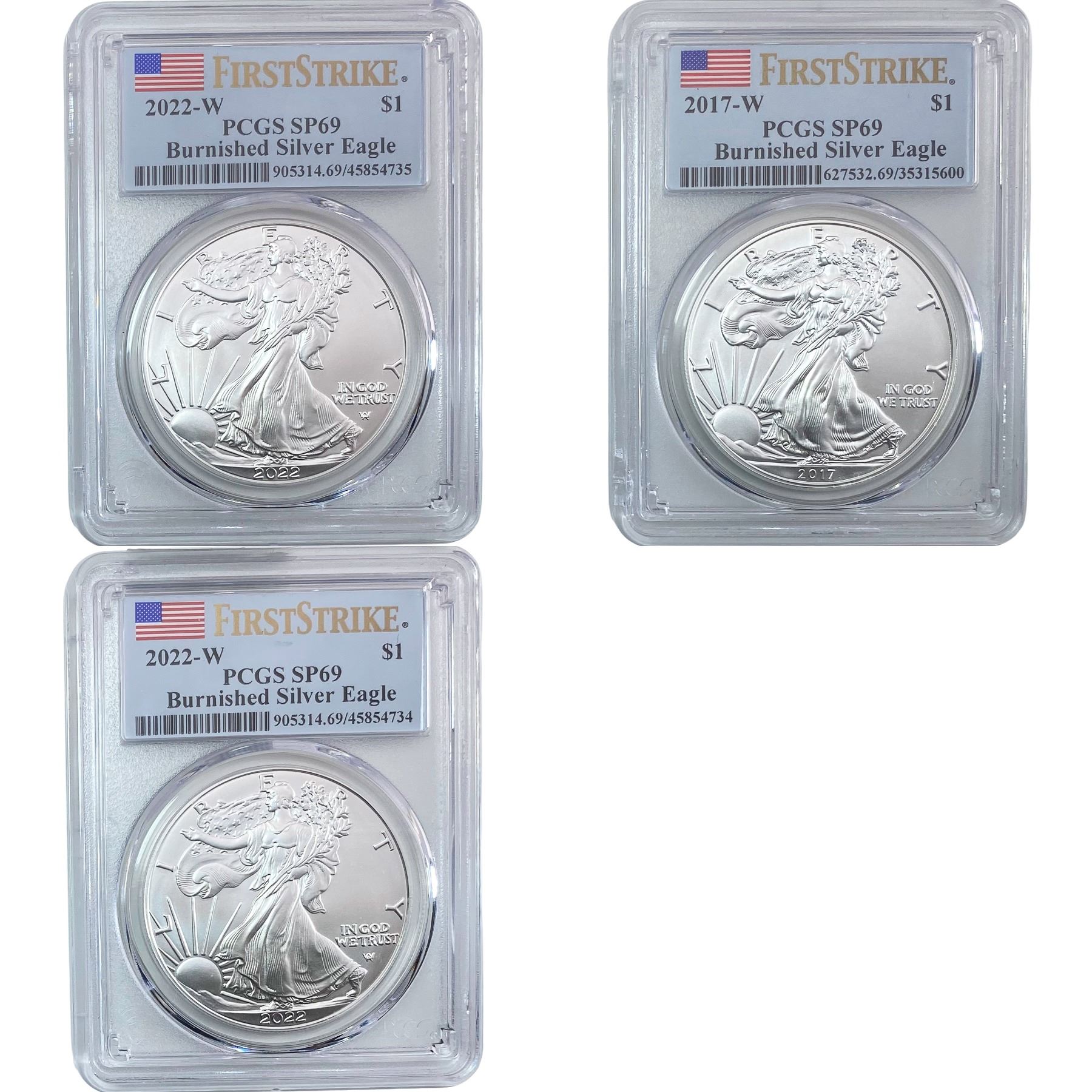 2017-2022-W GEM BU Silver Eagle [3 Coins] PCGS SP69
