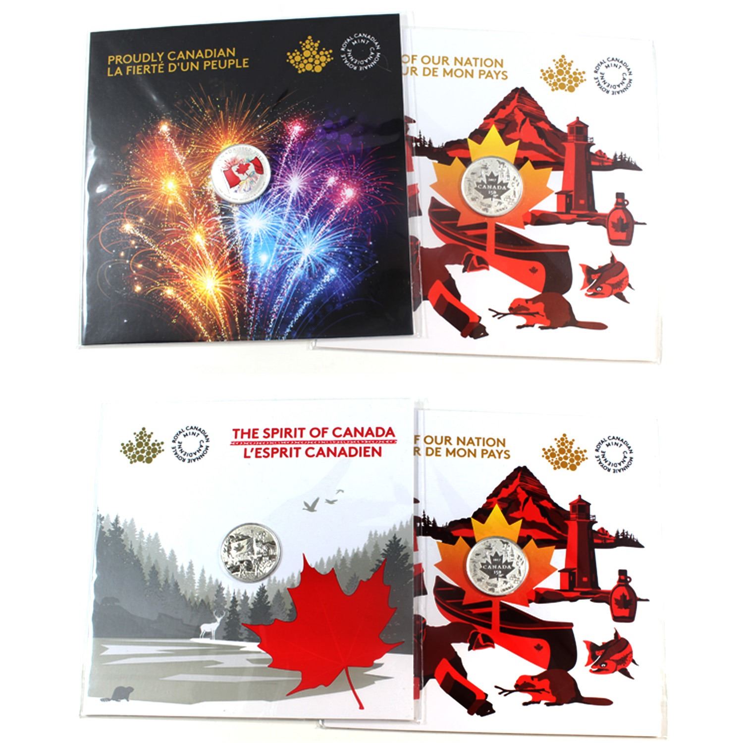 2017 $3 Heart of our Nation Fine Silver (2pcs), 2017 $3 The Spirit of Canada Fine Silver & 2017 Canada $5 Proudly Canadian Glow-in-the-Dark Fine Silver. 4pcs