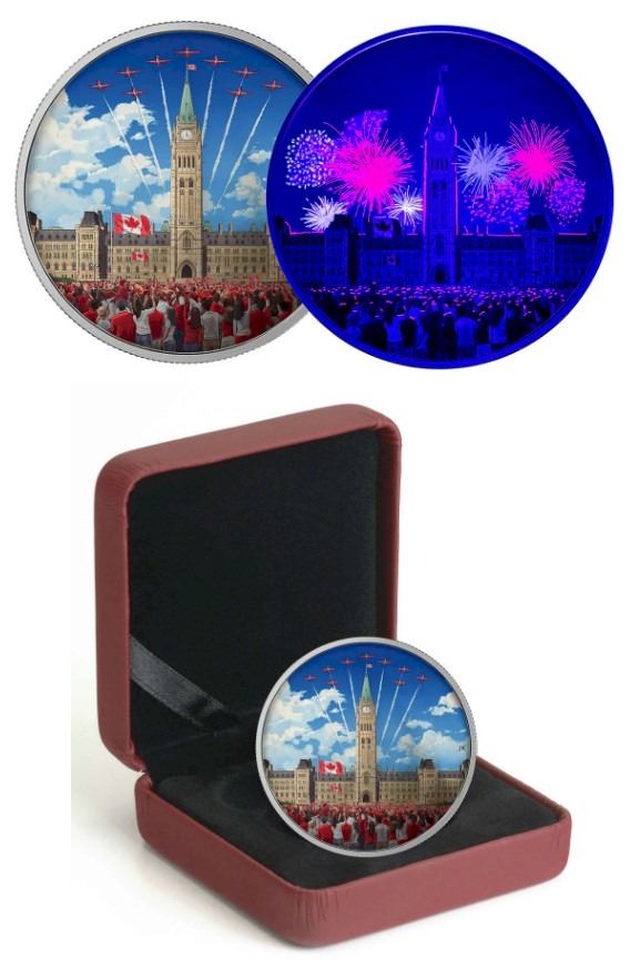 2017 $30 Celebrating Canada Day - 2 oz. Pure Silver Coin with Bonus Black Light. Tax Exempt.