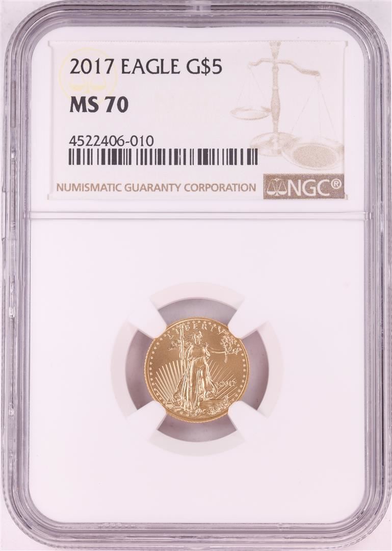 One 2017 $5 American Gold Eagle Coin NGC MS70. NGC Certified.