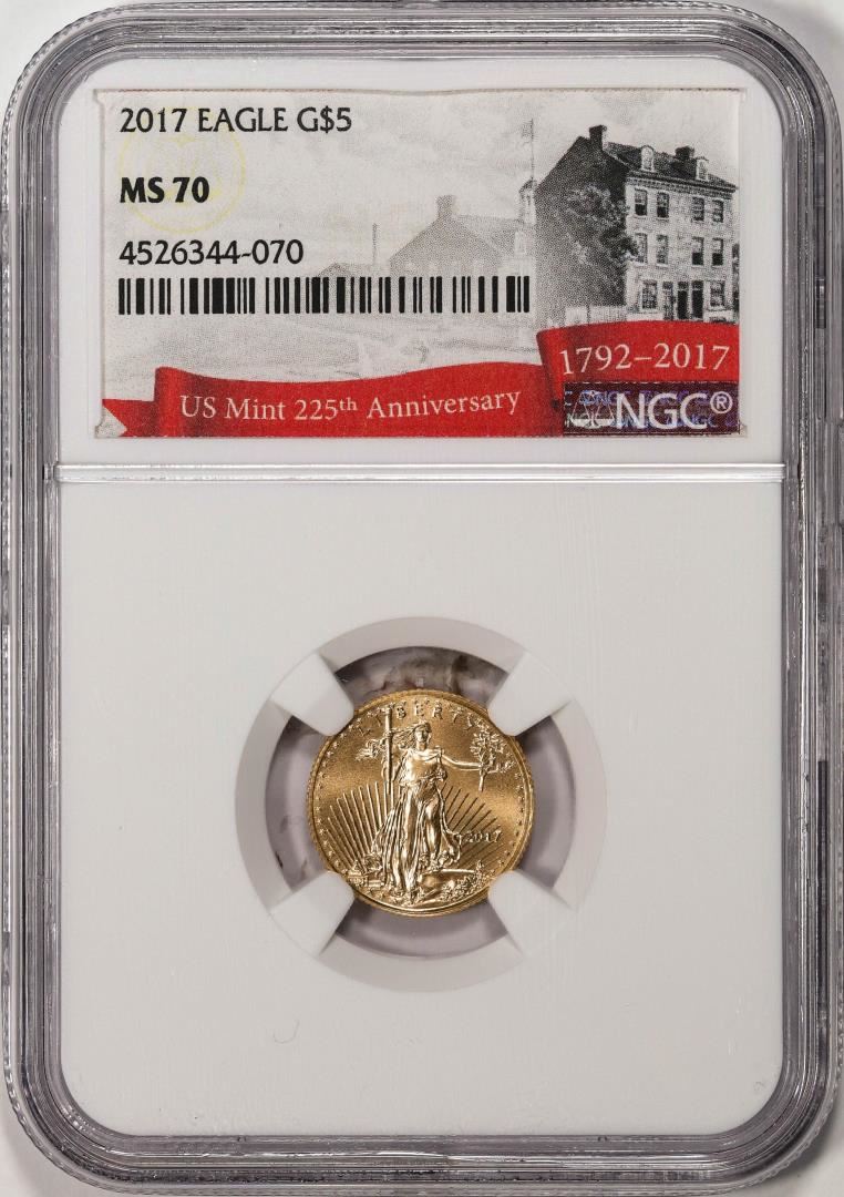 One 2017 $5 American Gold Eagle Coin NGC MS70. NGC Certified.
