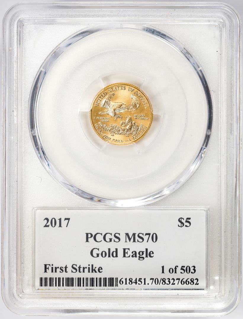 One 2017 $5 American Gold Eagle Coin PCGS MS70 First Strike Saint Gaudens Signature. PCGS Graded.