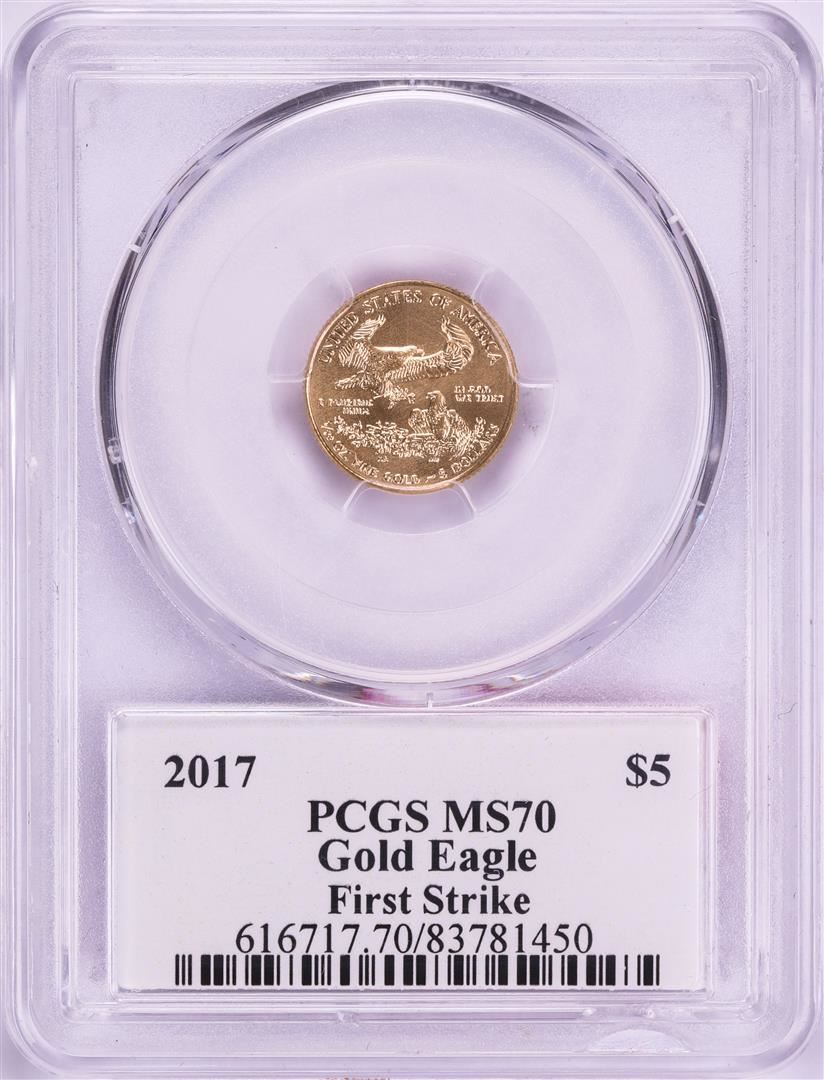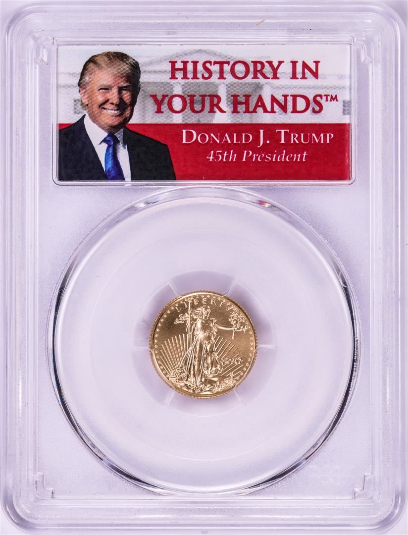 2017 $5 American Gold Eagle Coin PCGS MS70 First Strike Trump Label