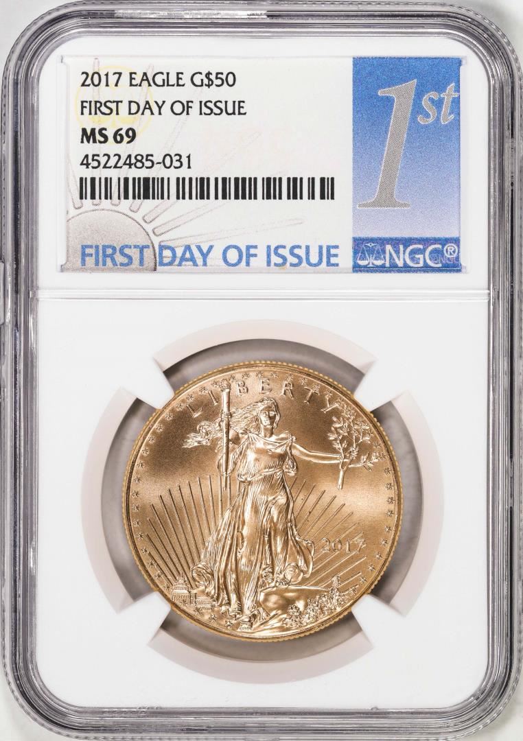 One 2017 $50 American Gold Eagle Coin NGC MS69 First Day of Issue. NGC Certified.