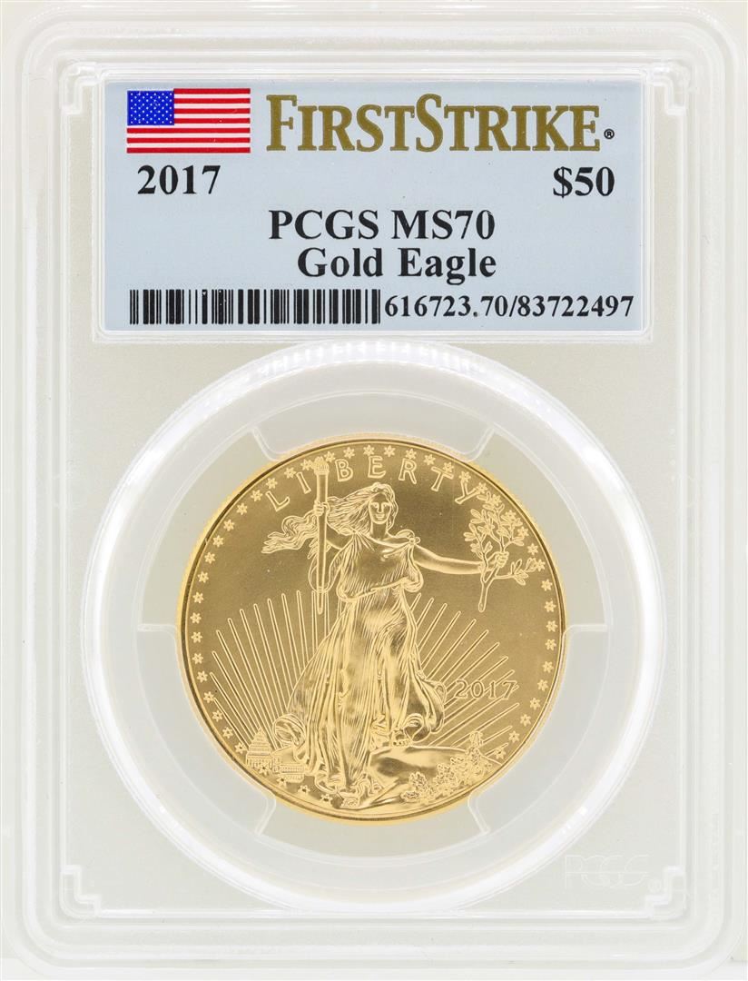 One 2017 $50 American Gold Eagle Coin PCGS MS70 First Strike. PCGS Graded.