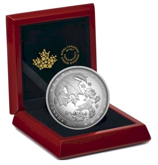2017 $50 Maple Leaves in Motion - Pure Silver Convex Coin. Tax Exempt.