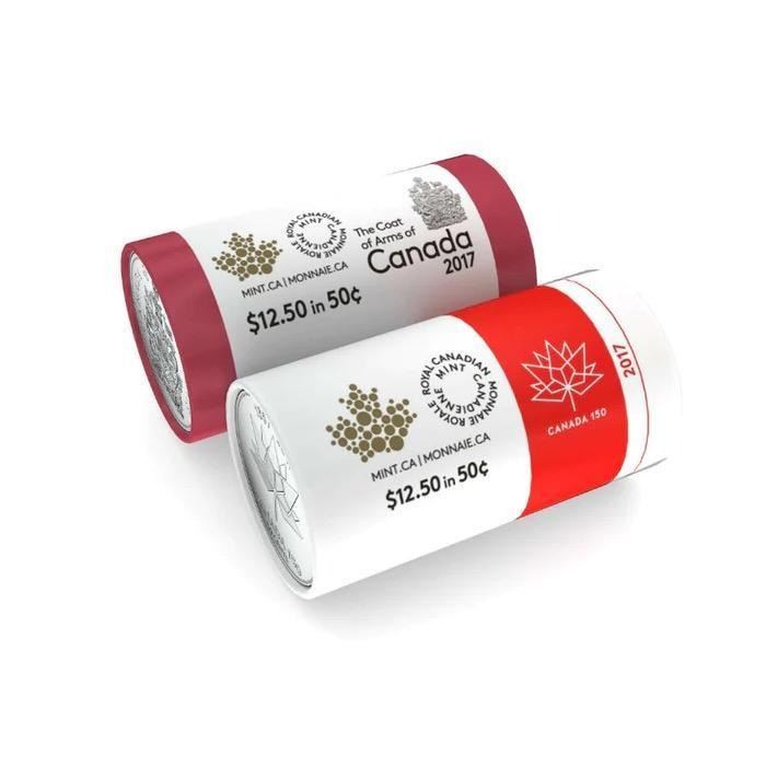 2017 50c Coat of Arms and Canada 150 Special Wrap Rolls - 2 Pack