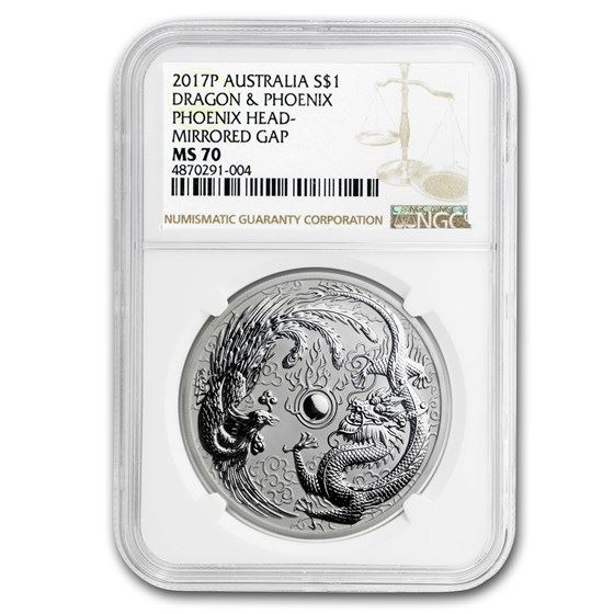 One piece 2017 AUS 1 oz Silver Dragon & Phoenix MS-70 NGC (Mint Error)