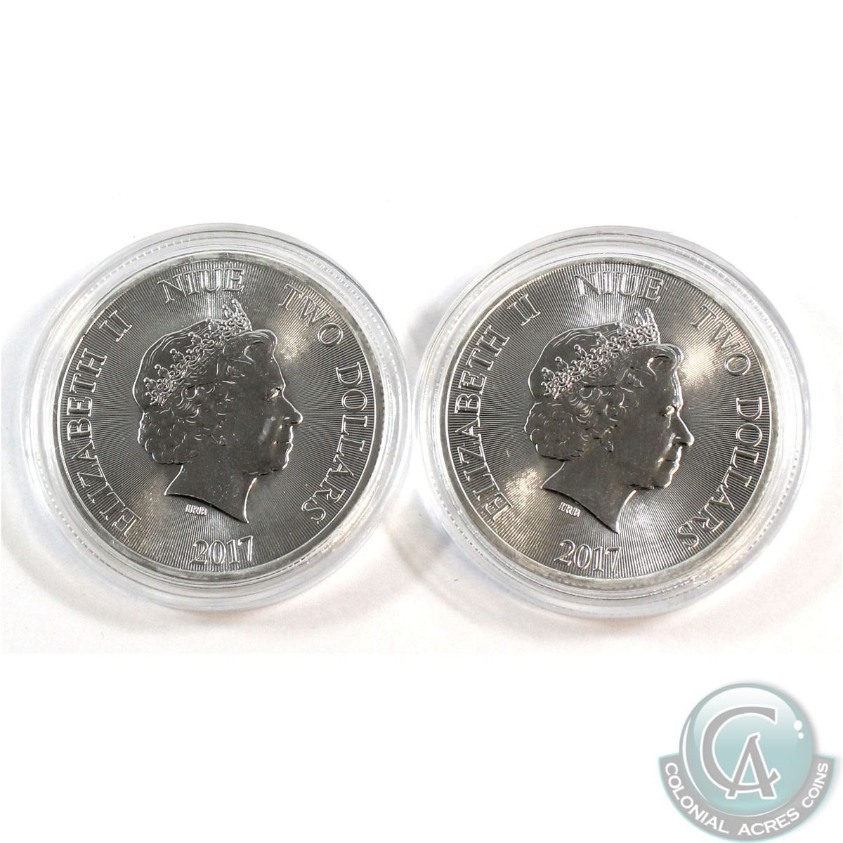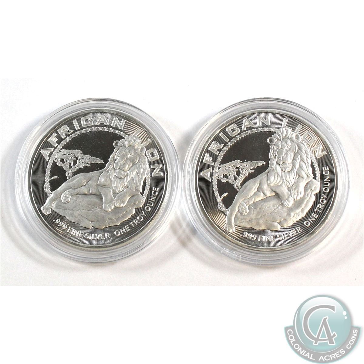 2017 African Lion Niue $2 .999 Fine Silver Coins encapsulated (Tax Exempt). 2pcs.