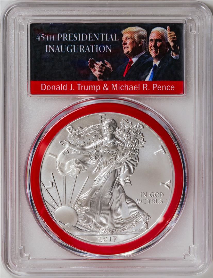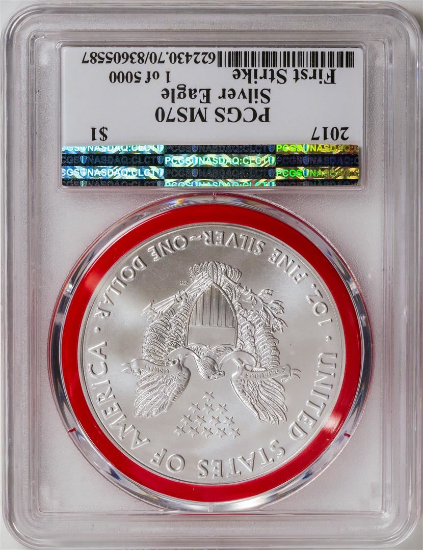 One 2017 American Silver Eagle .999 Fine Silver Dollar Coin PCGS MS70.