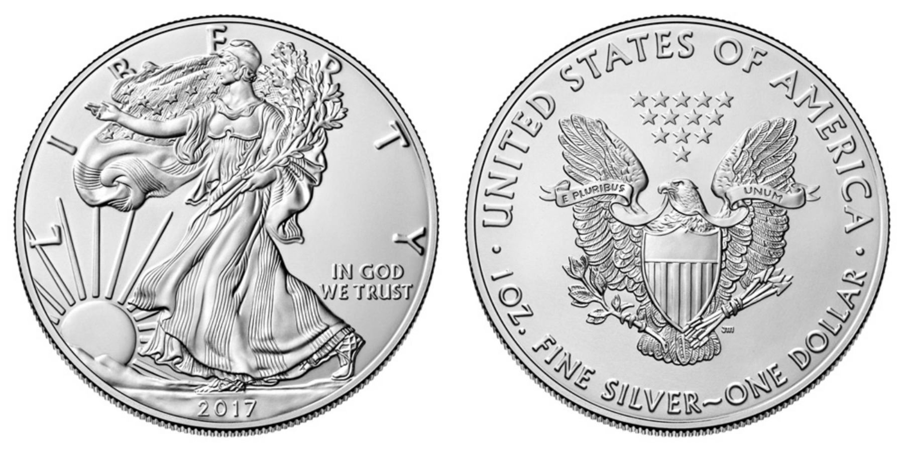 One 2017 American Silver Eagle .999 Fine Silver Dollar Coin.