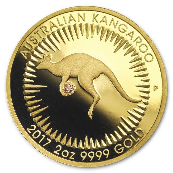 One piece 2017 Australia 2 oz Gold Proof Kangaroo Pink Diamond Edition