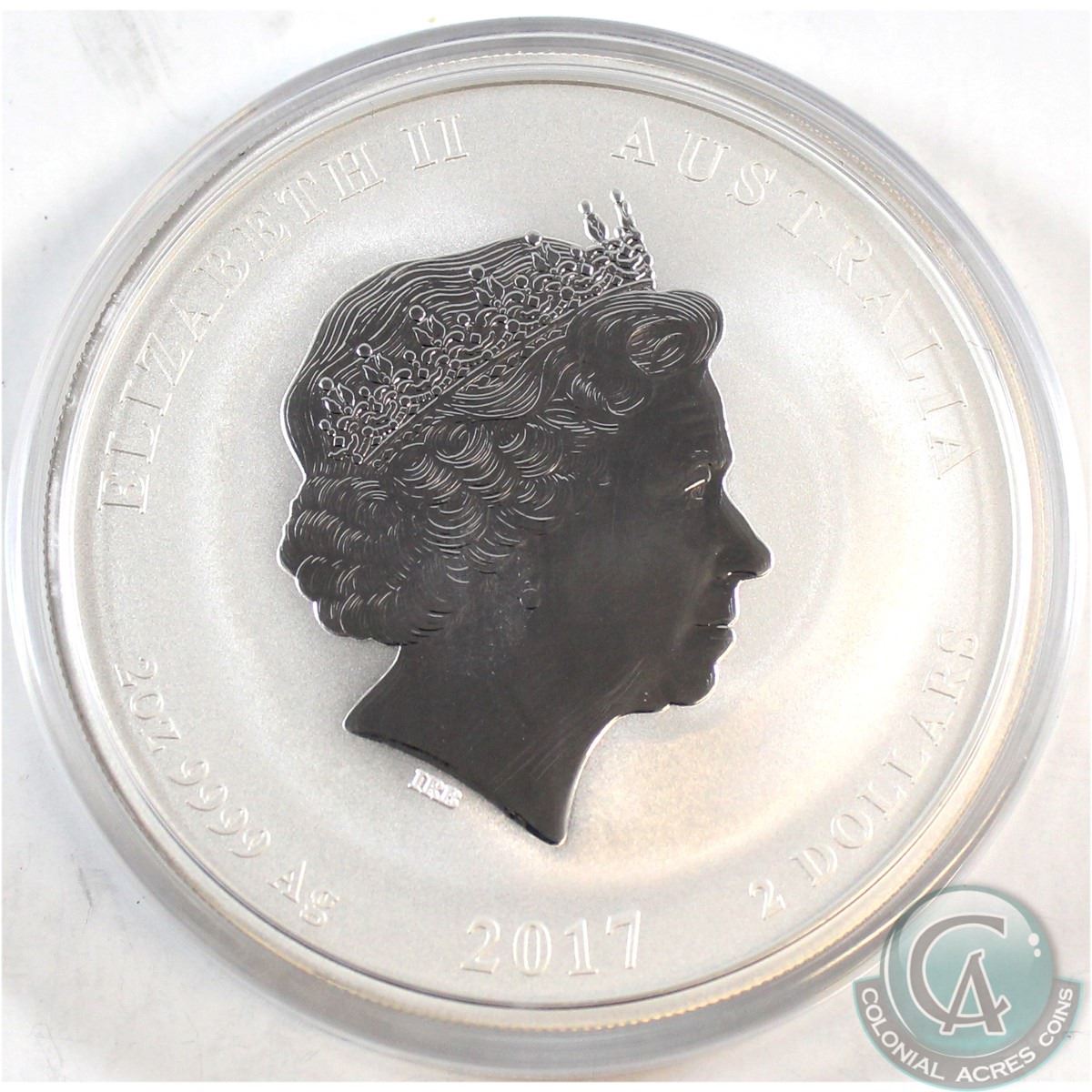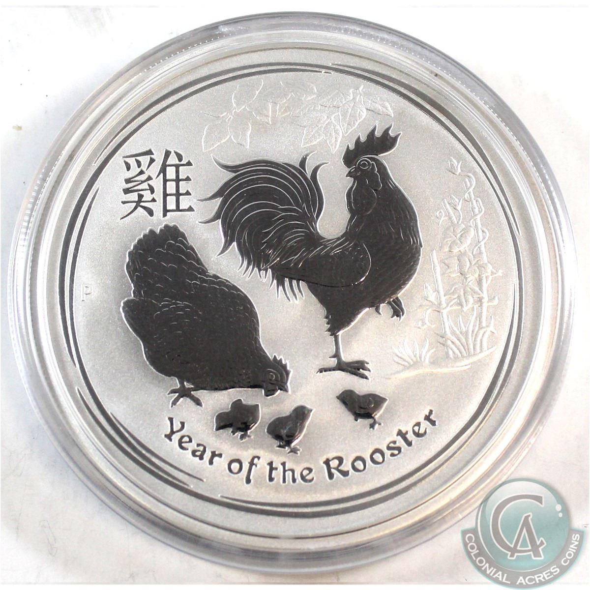 2017 Australia 2oz Year of the Rooster .999 Fine Silver Coin in Capsule (capsule lightly scratched). Tax Exempt