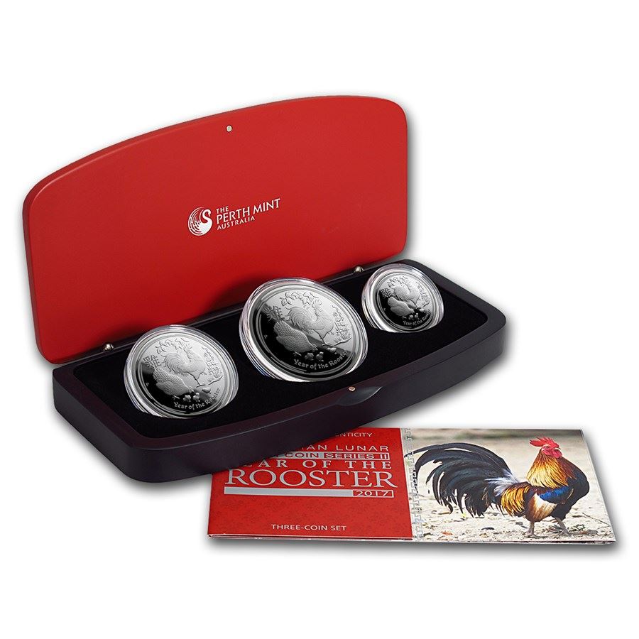 2017 Australia 3-Coin Silver Lunar Rooster Proof Set