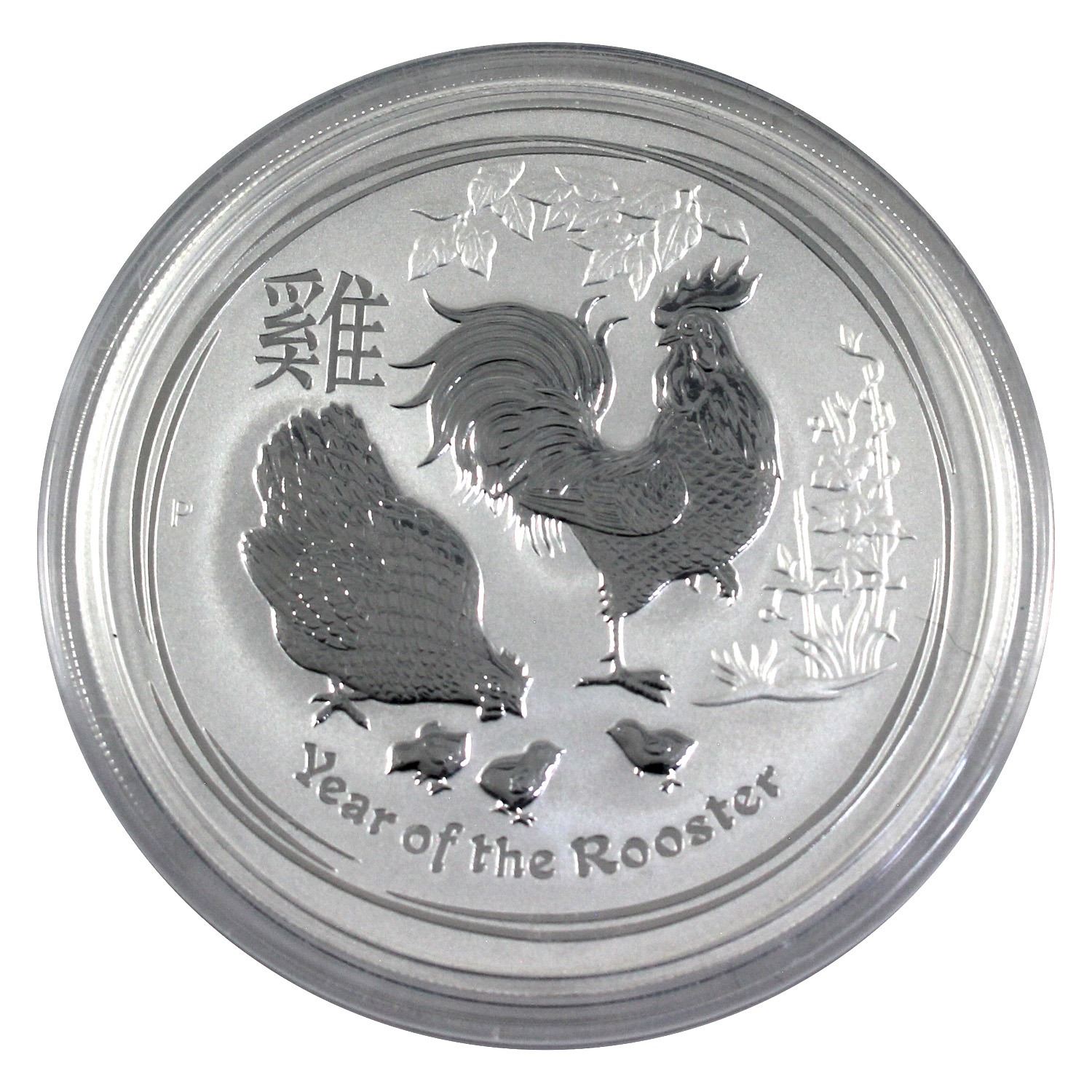 2017 Australia 5oz Year of the Rooster .999 Fine Silver Coin in Capsule (Scratched capsule). TAX Exempt