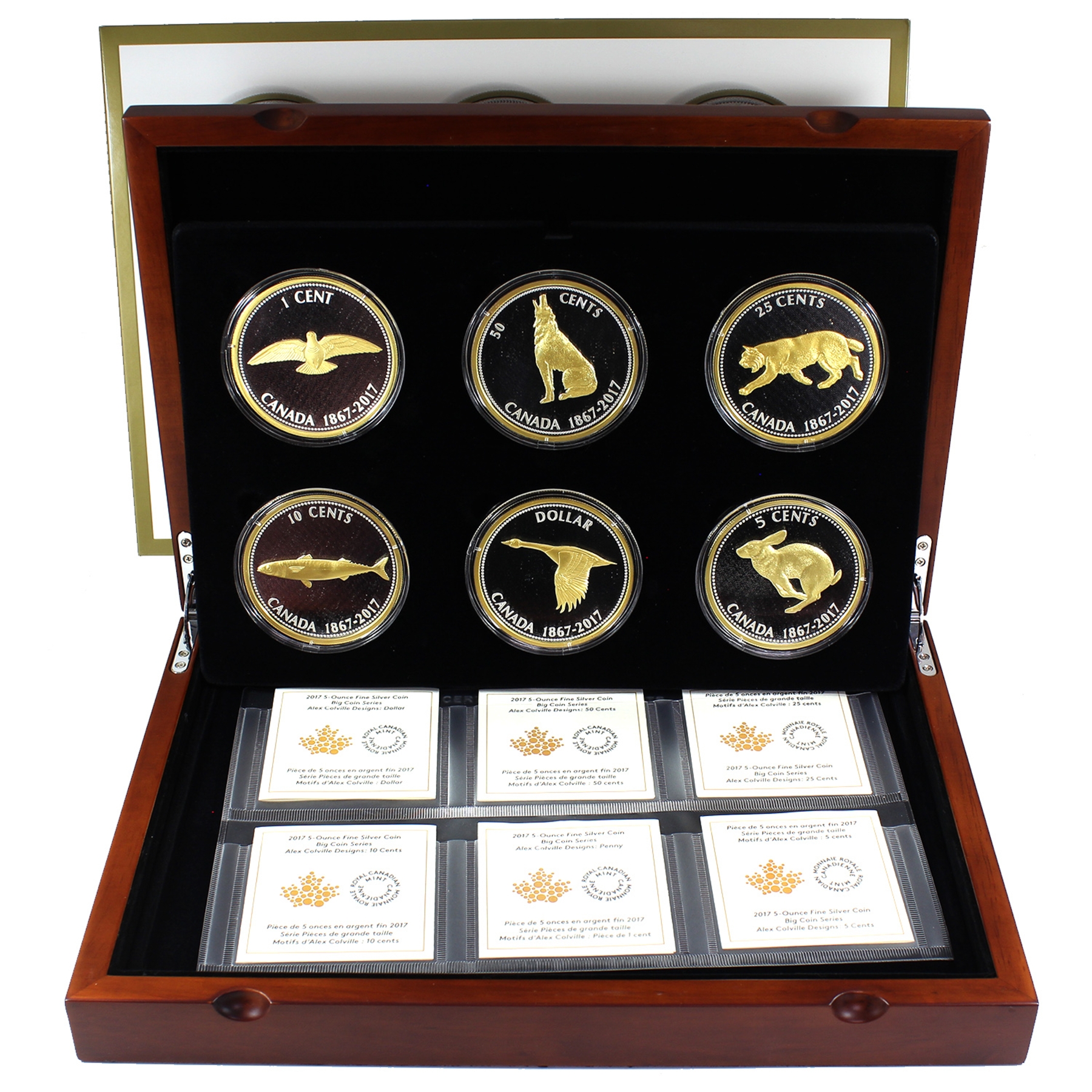 Limited mintage of only 2150! Each coin is .9999 fine with selective gold plating. Designs by Alex Colville, the artist behind the iconic 1967 Centennial coin designs. (Tax Exempt)