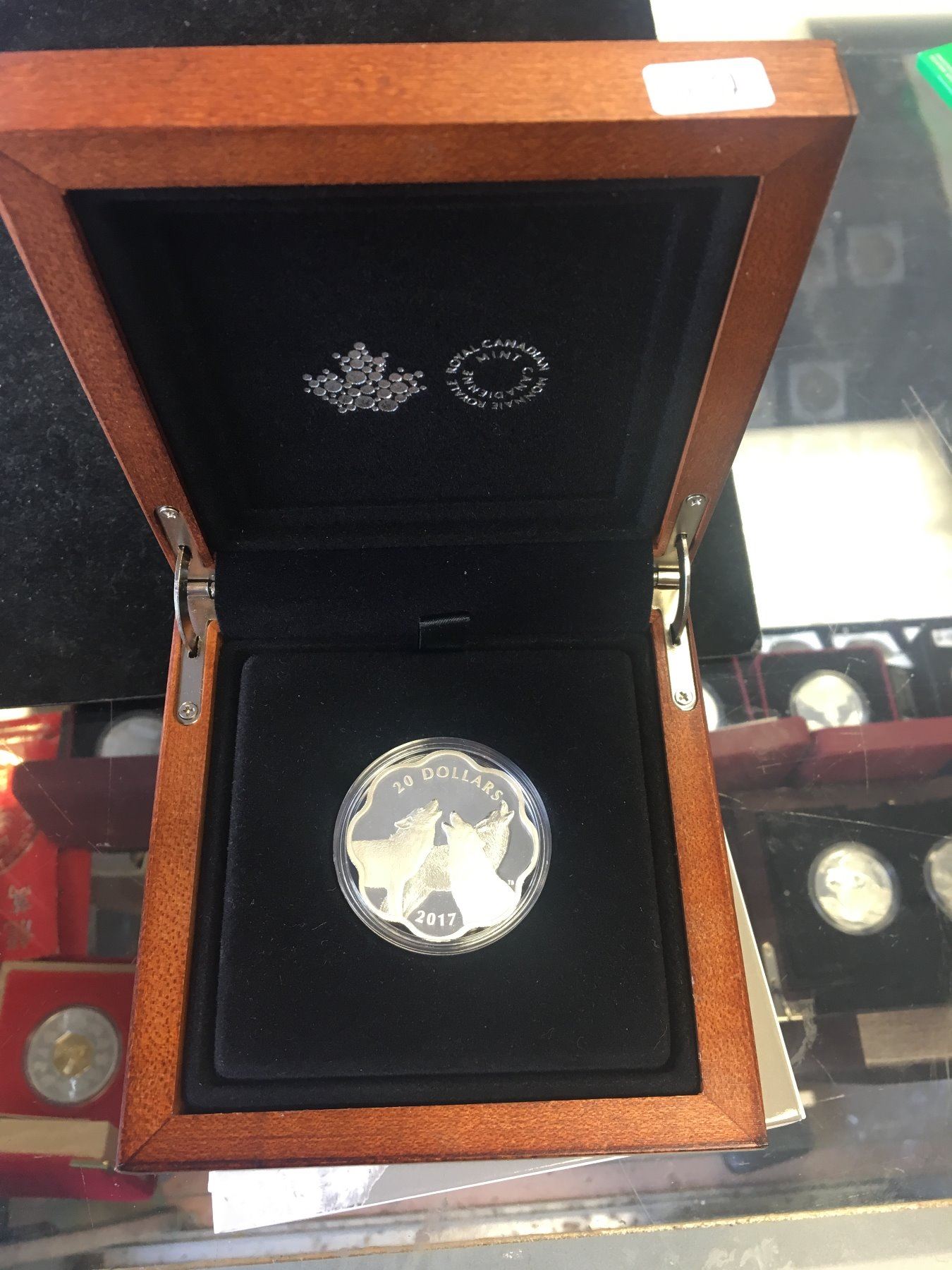 NICE CANADA $20 FINE SILVER OIN IN ITS ORIGINAL WOODEN CASE AND OUTER BOX!