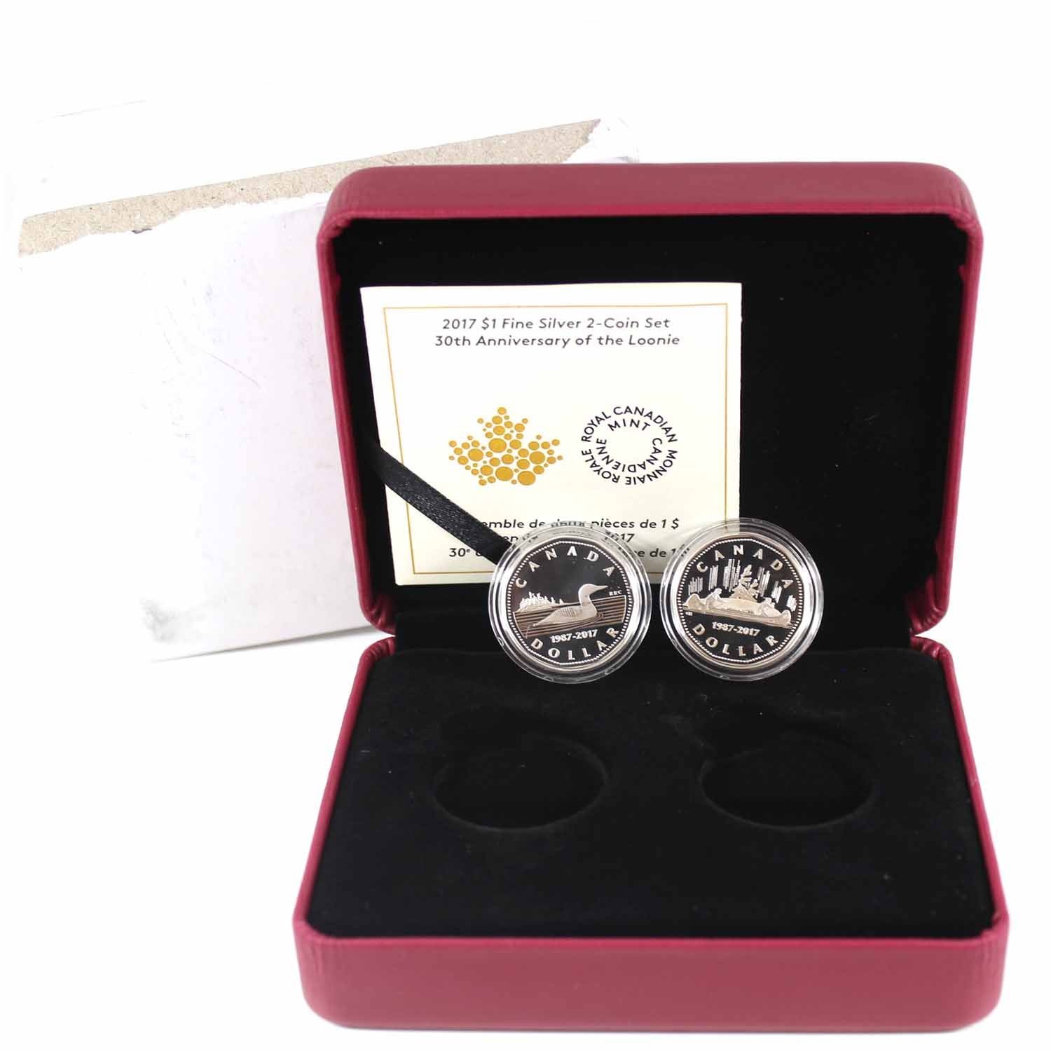 2017 Canada $1 30th Anniversary of the Loonie Fine Silver 2-coin Set (missing original outer cardboard sleeve). TAX Exempt