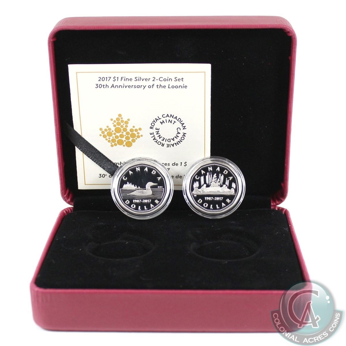 2017 Canada $1 30th Anniversary of the Loonie Fine Silver 2-coin Set (missing outer sleeve). TAX Exempt