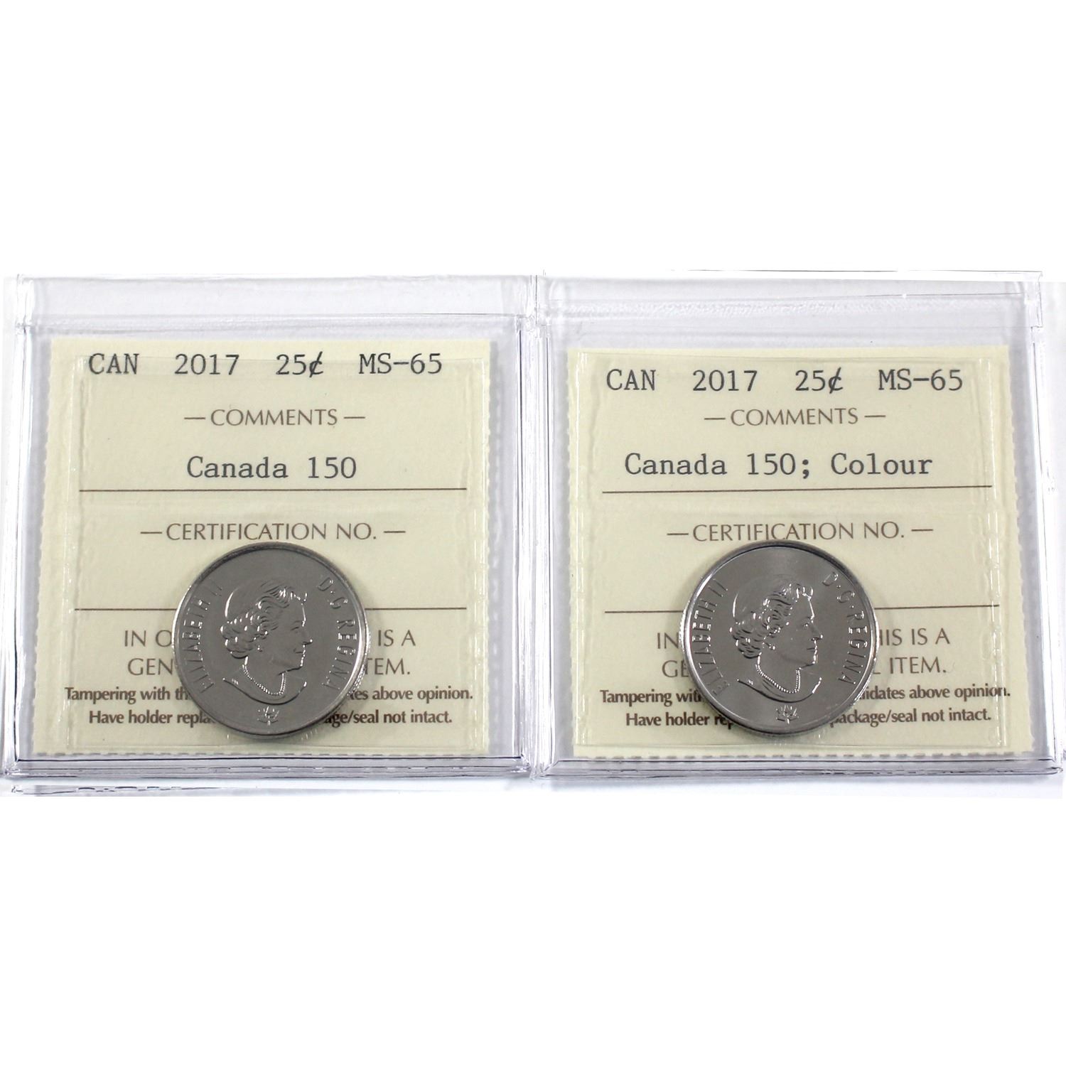 2017 Canada 150 25-cent Coloured & Non Coloured ICCS Certified MS-65.2pcs