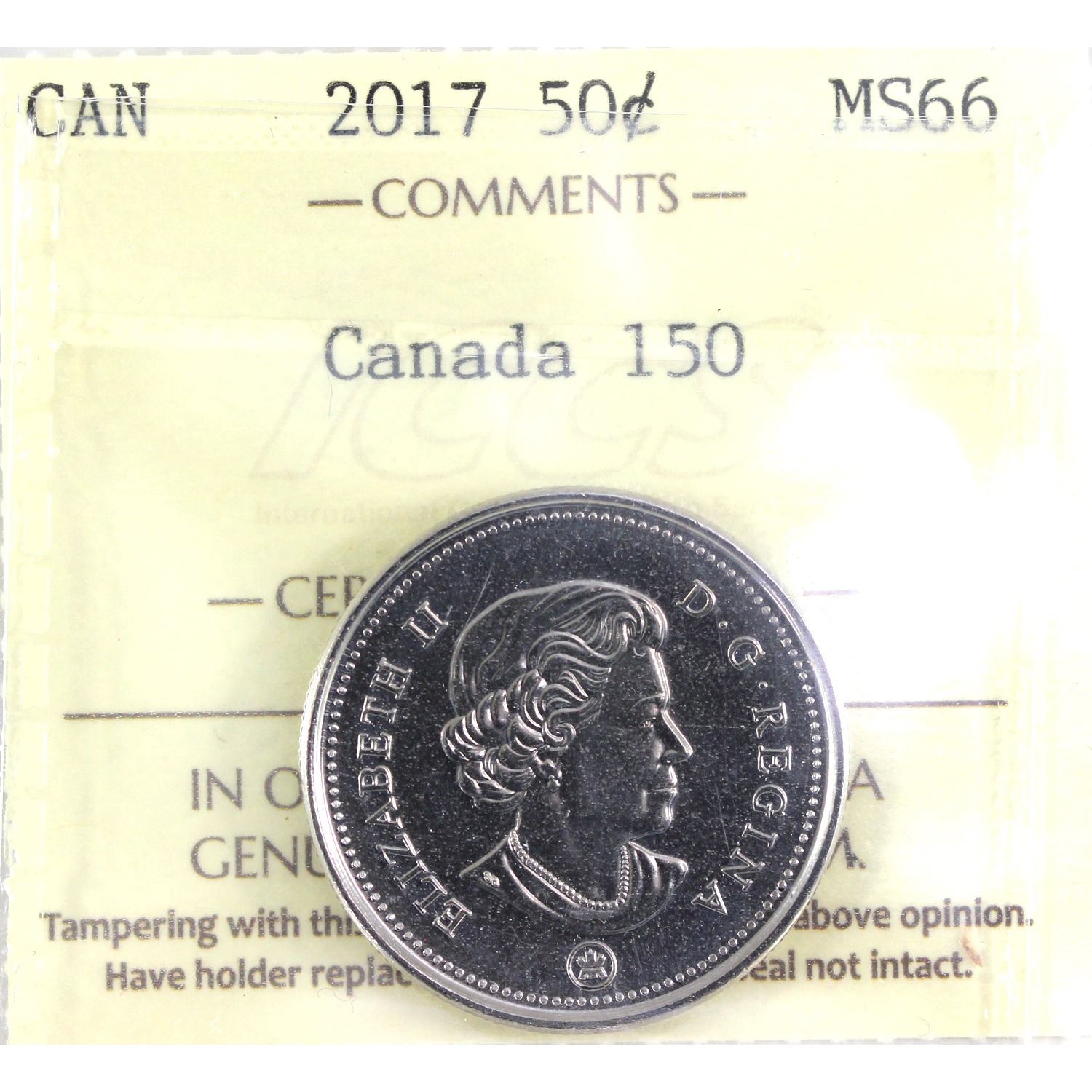 2017 Canada 150, Canada 50-cent ICCS Certified MS-66