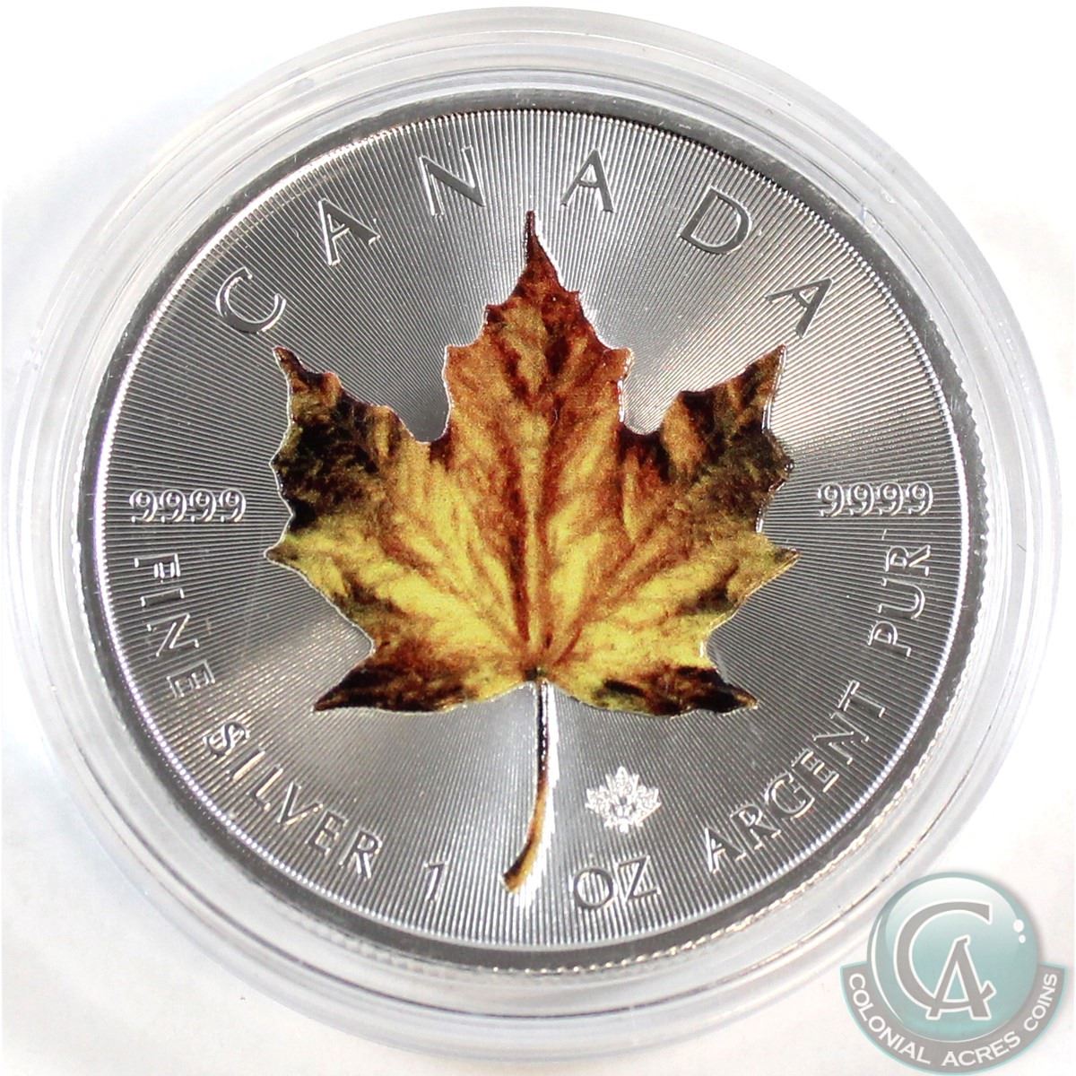 2017 Canada 1oz .9999 Fine Silver Coloured Yellow Maple Leaf (capsule scratched). Tax Exempt