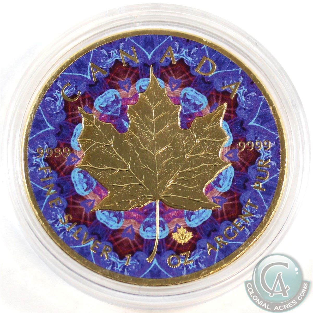 2017 Canada 1oz .9999 Fine Silver Coloured and Gilded Kaleidoscope Maple Leaf (TAX Exempt)