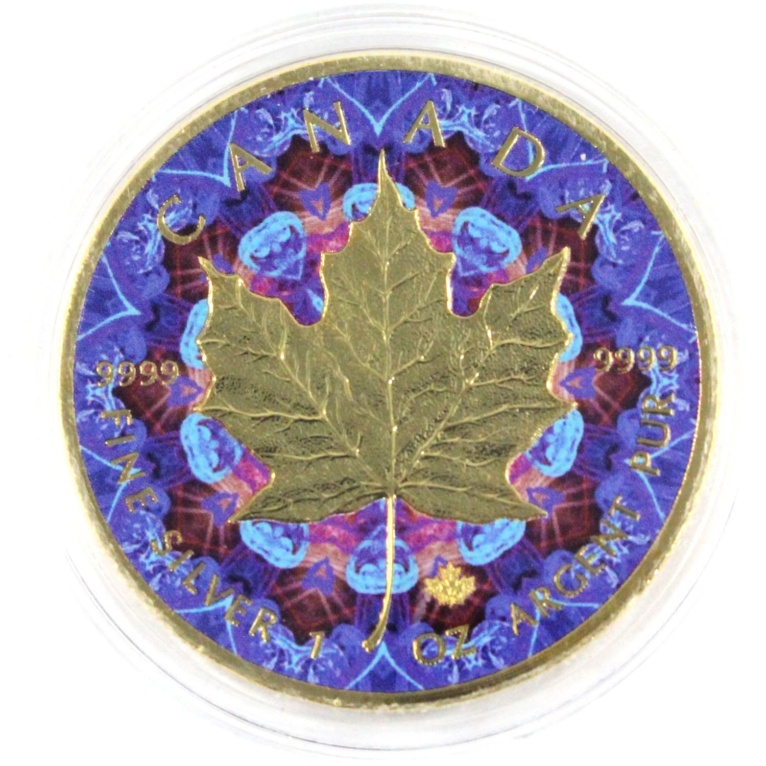 2017 Canada 1oz Kaleidoscope Coloured & Gilded .9999 Fine Silver Maple Leaf in Capsule. (TAX Exempt)