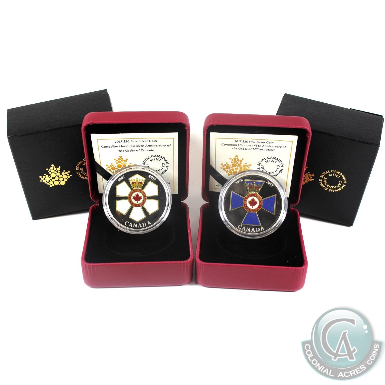 2017 Canada $20 Canadian Honours Fine Silver Coloured Coins - 45th Anniversary of the Order of Military Merit & 50th Anniversary of the Order of Canada. 2pcs (TAX Exempt)