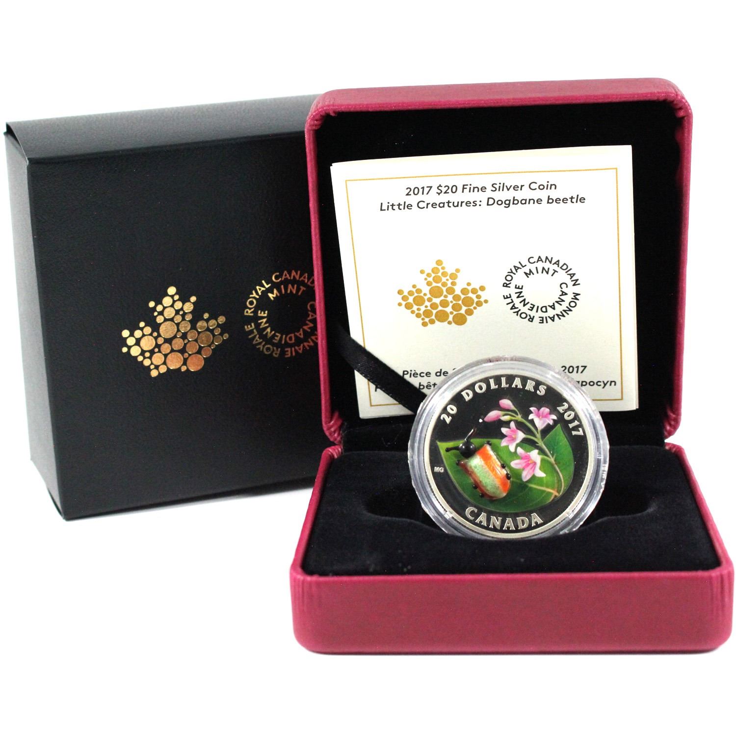 2017 Canada $20 Little Creatures - Venetian Glass Dogbane Beetle Fine Silver Coin (Capsule is impaired & display box lightly discoloured).