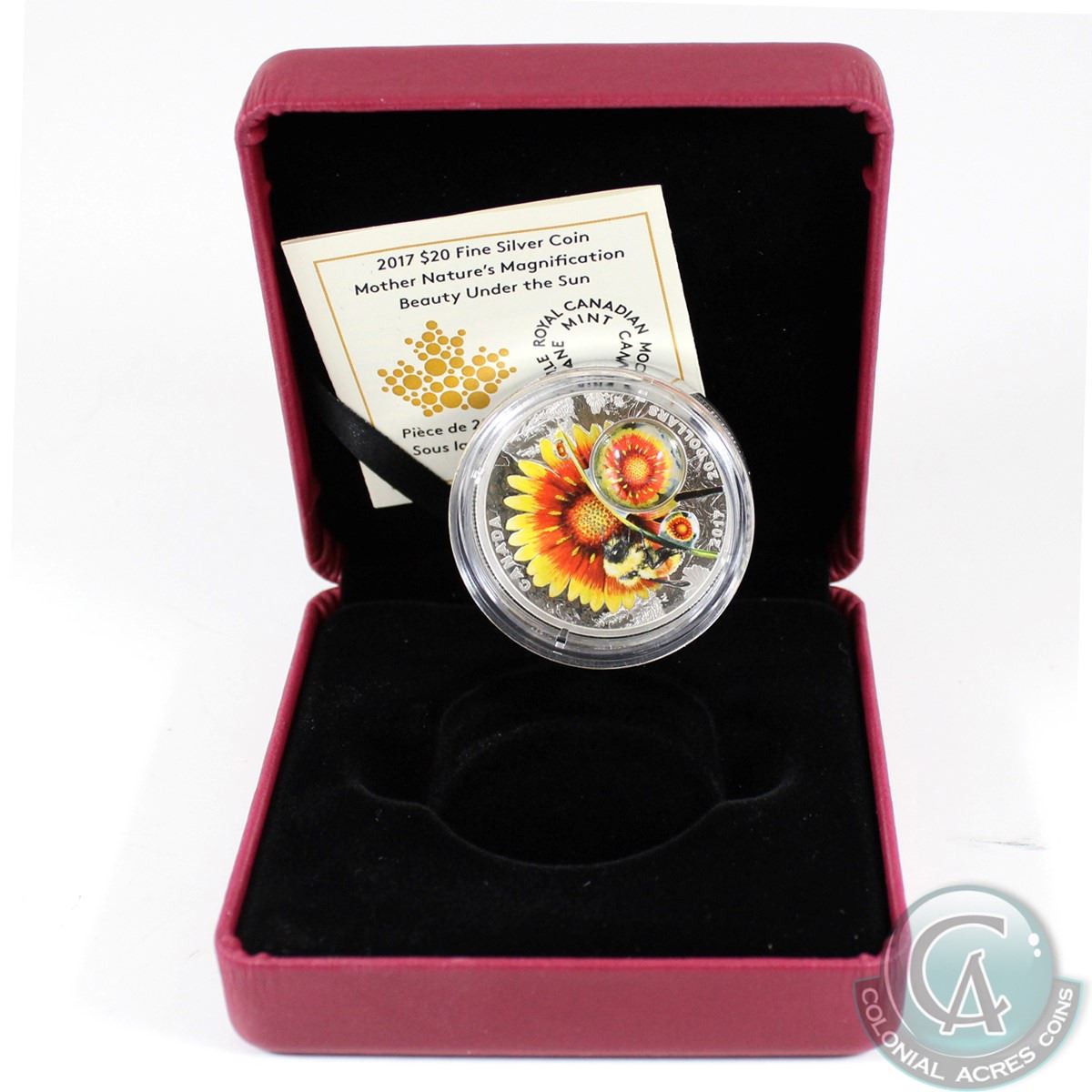 2017 Canada $20 Mother Nature's Magnification - Beauty Under The Sun Fine Silver Coin (Tax Exempt). Please note outer black cardboard sleeve is not included.