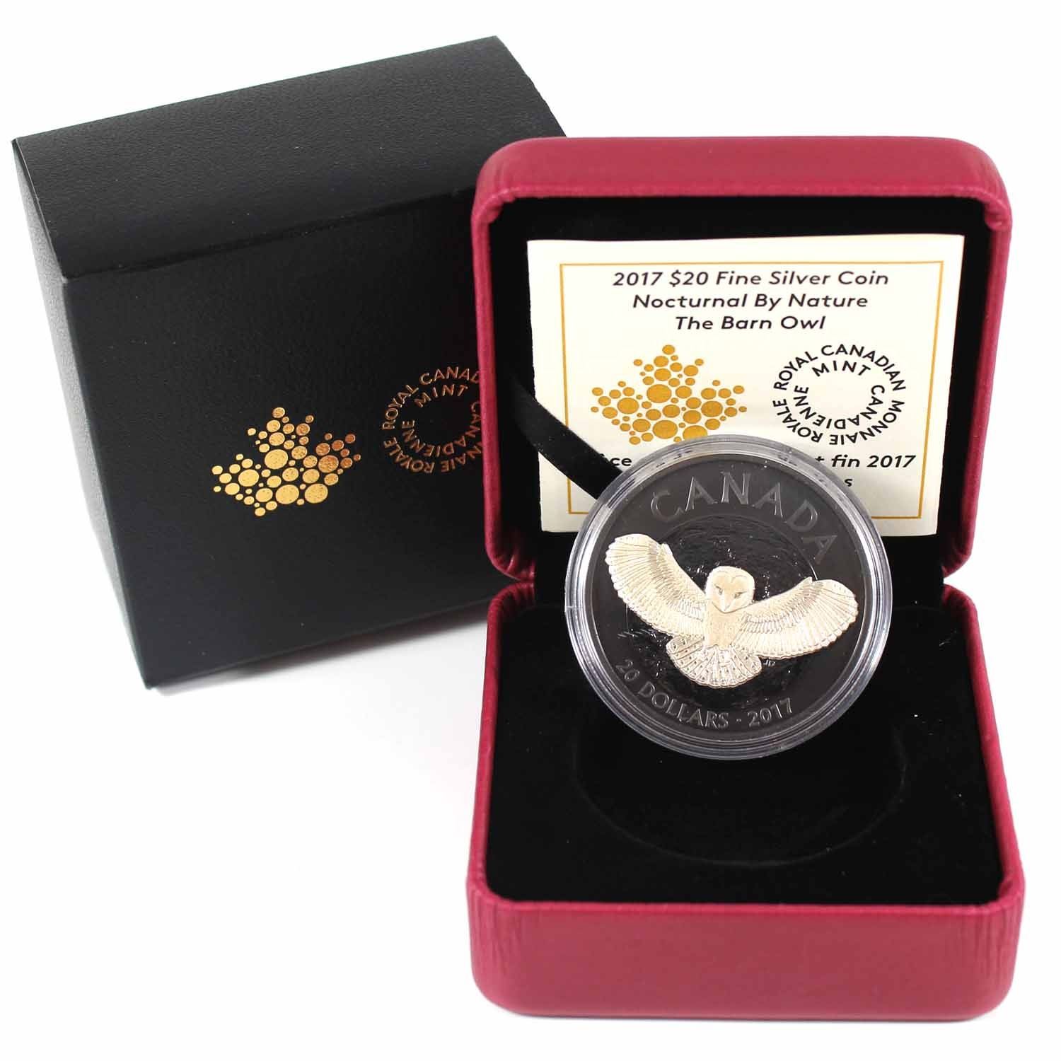 2017 Canada $20 Nocturnal By Nature - The Barn Owl Fine Silver Coin (capsule lightly scratched). TAX Exempt