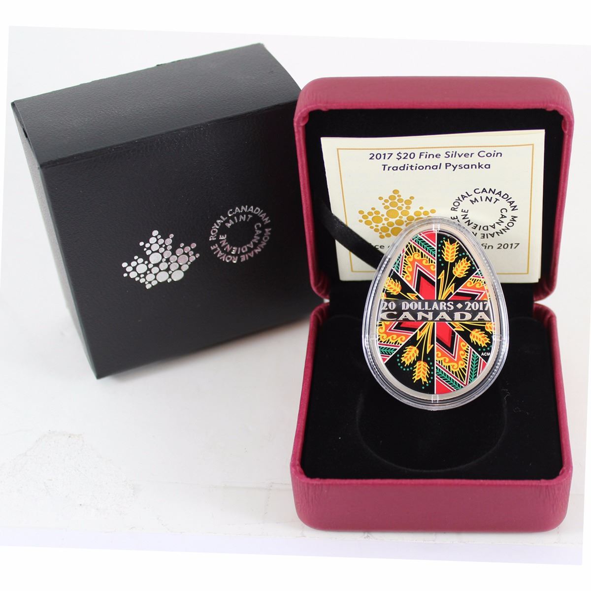2017 Canada $20 Traditional Ukrainian Pysanka (Egg-Shaped) Fine Silver Coin (TAX Exempt). Comes with all original packaging issued by the Royal Canadian Mint.
