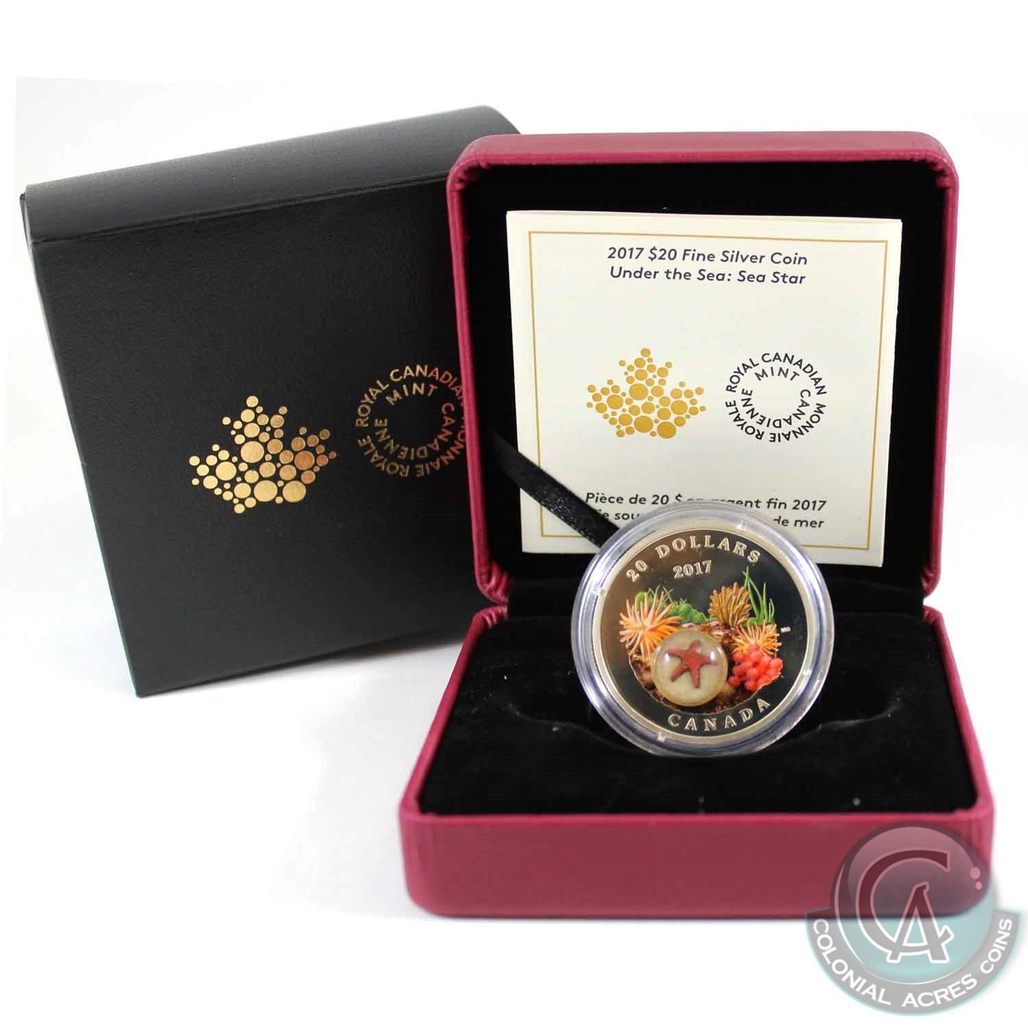 2017 Canada $20 Under the Sea - Sea Star Fine Silver Coin (coin is lightly toned & sleeve unglued one side and dented on one corner). Tax Exempt