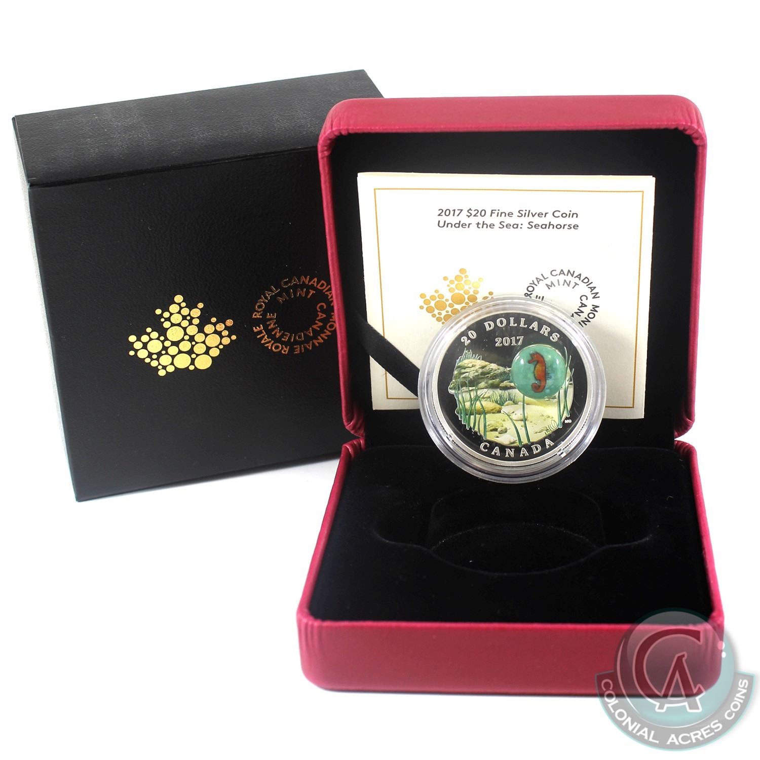 2017 Canada $20 Under the Sea - Seahorse Fine Silver Coin (Sleeve unglued on one side). (TAX Exempt)