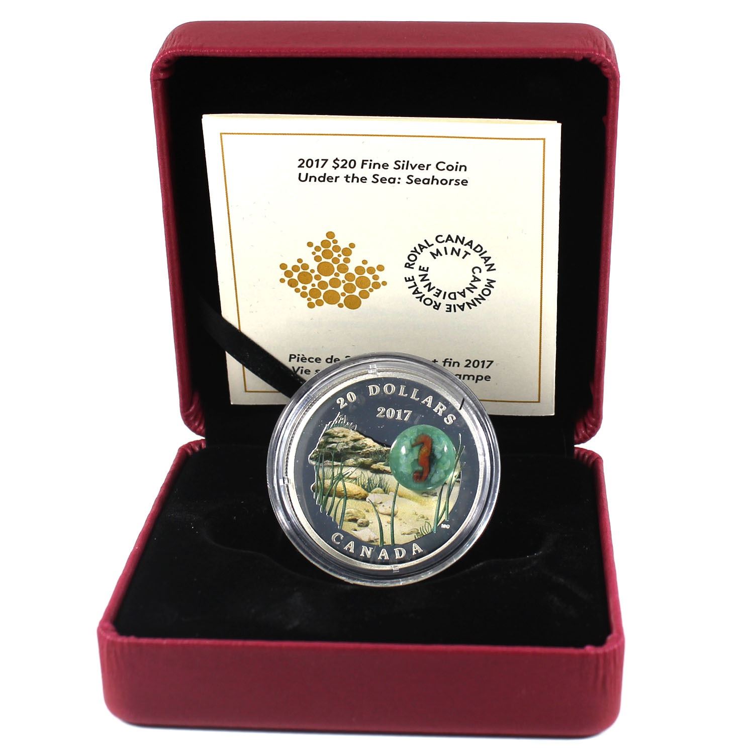 2017 Canada $20 Under the Sea - Seahorse Fine Silver Coin (outer sleeve lightly bent). TAX Exempt