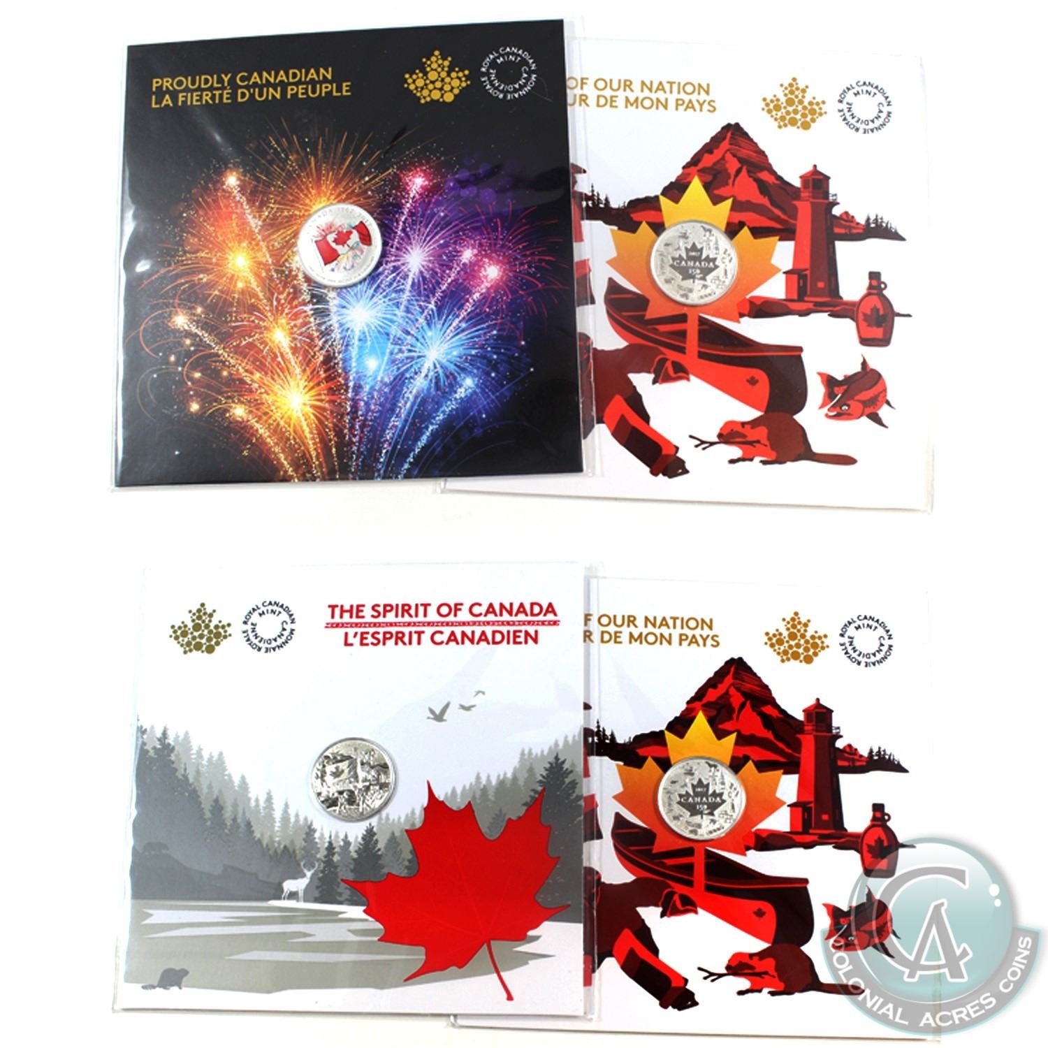2017 Canada $3 & $5 Commemorative silver coins(Tax Exempt). This lot includes: 2x 2017 $3 Heart of our Nation Fine Silver, 2017 $3 The Spirit of Canada fine silver, 2017 Canada $5 Proudly Canadian Glow-in-the-Dark Fine Silver. 4pcs