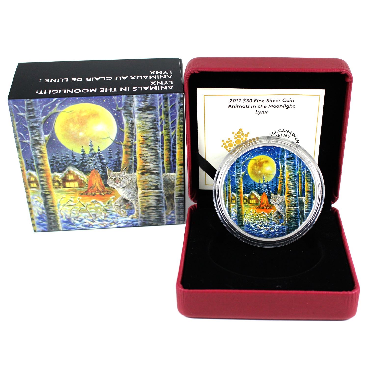 2017 Canada $30 Animals in the Moonlight - Lynx Fine Silver Coin. (TAX Exempt)