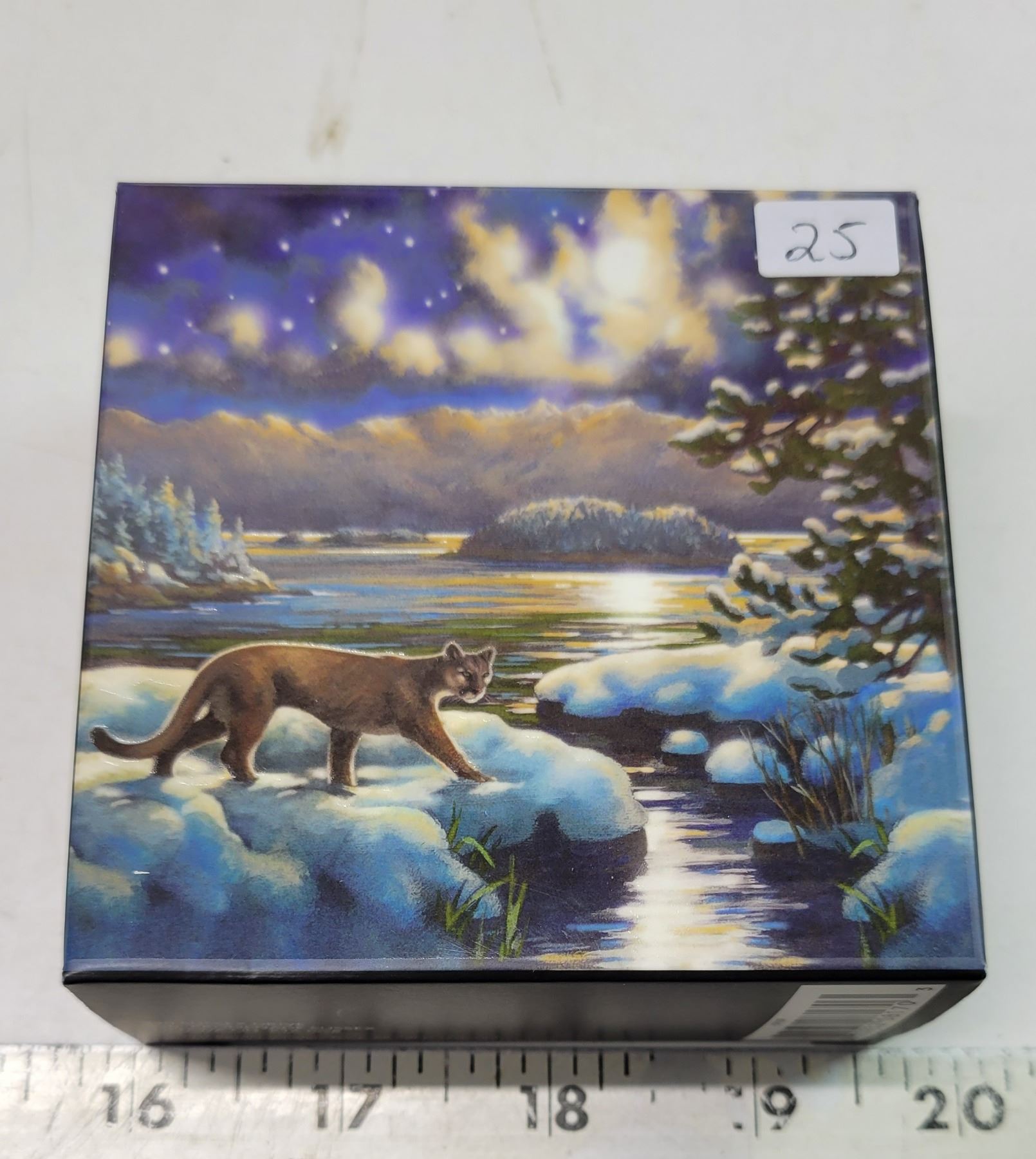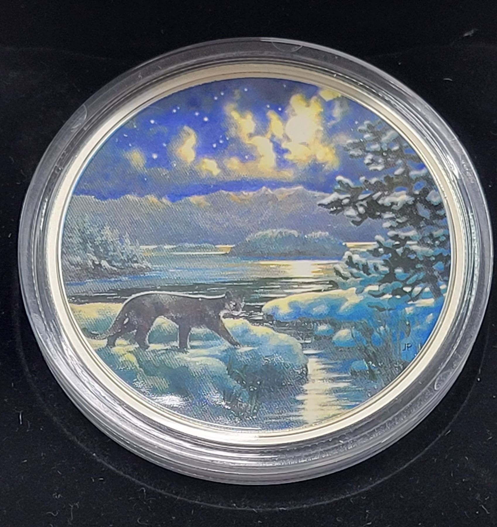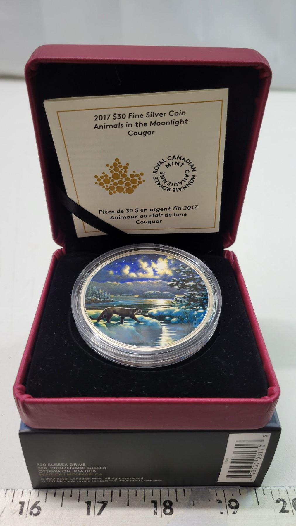 2017 Canada $30 Fine Silver Colored Coin, Animals in the Moonlight: Cougar, COA