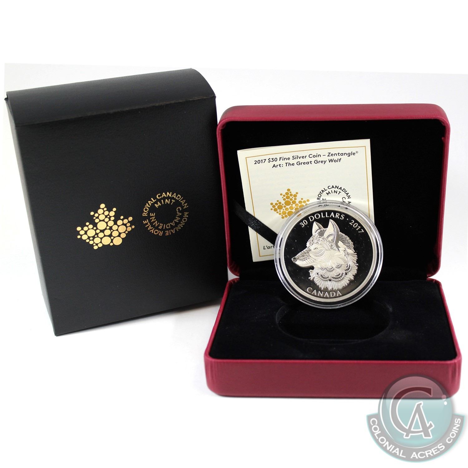 2017 Canada $30 Zentangle Art -The Great Grey Wolf 2oz Fine Silver Coin (Tax Exempt).