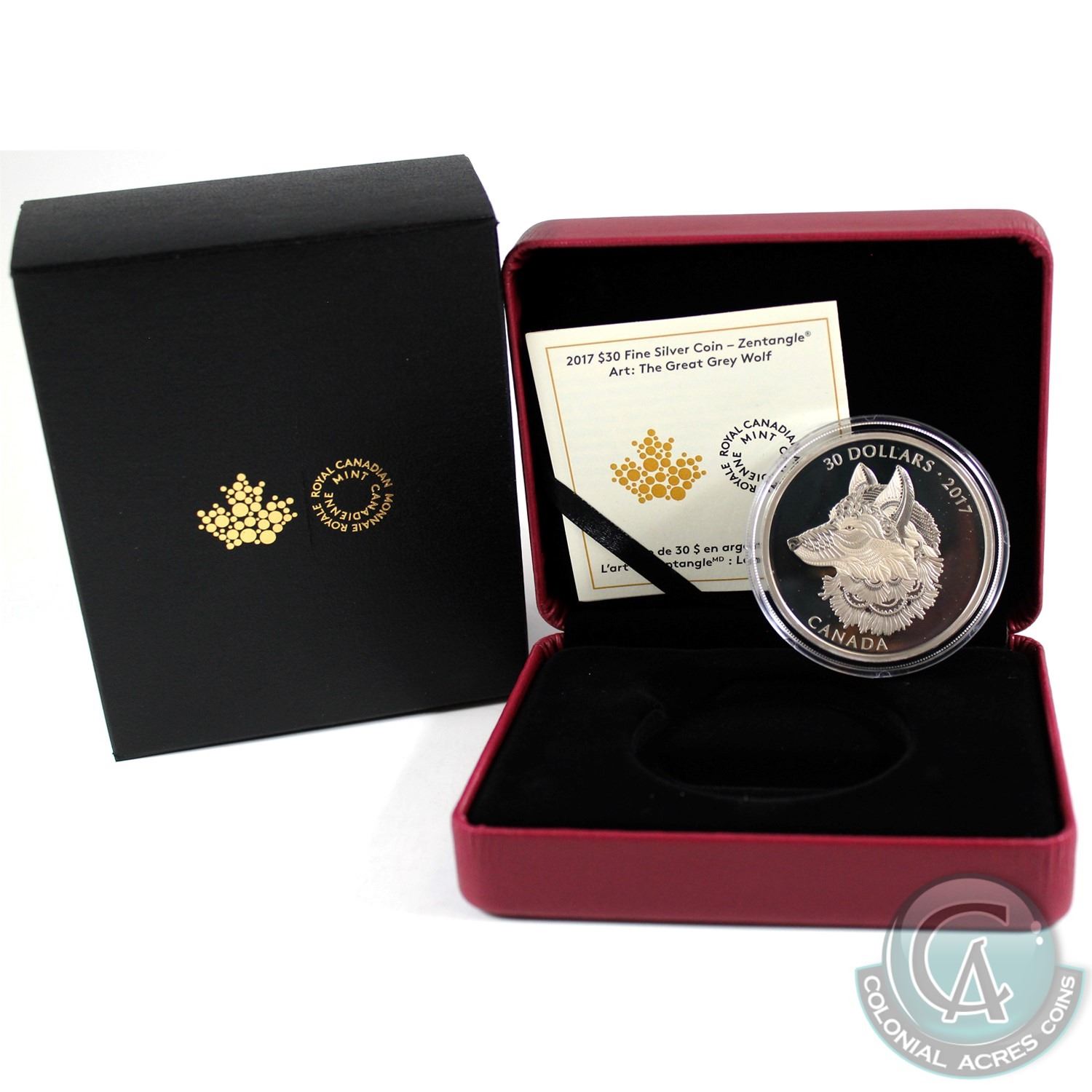 2017 Canada $30 Zentangle Art - The Great Grey Wolf 2oz Fine Silver Coin (capsule lightly scratched). Tax Exempt