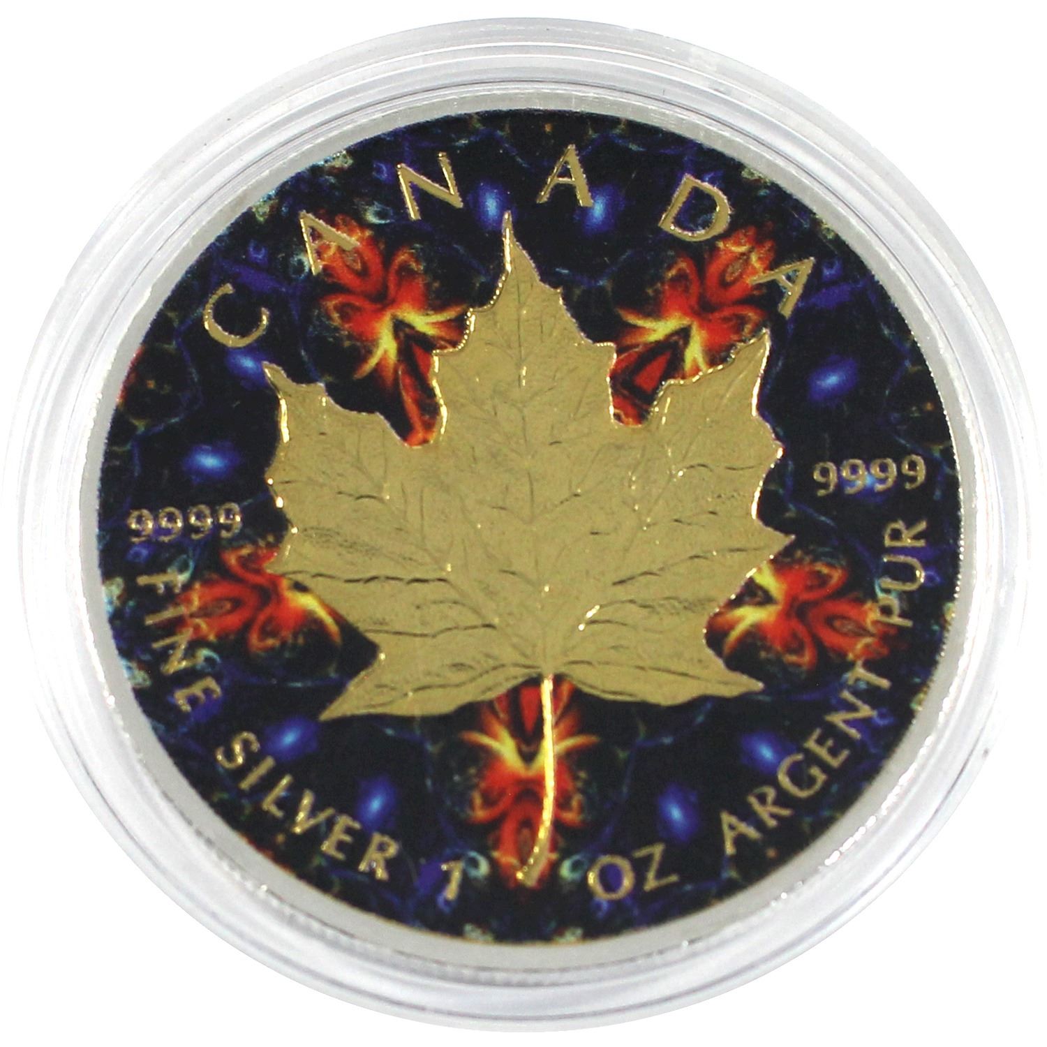 2017 Canada $5 Coloured blue kaleidoscope with Gold Plating 1oz Fine Silver Maple (Tax Exempt)