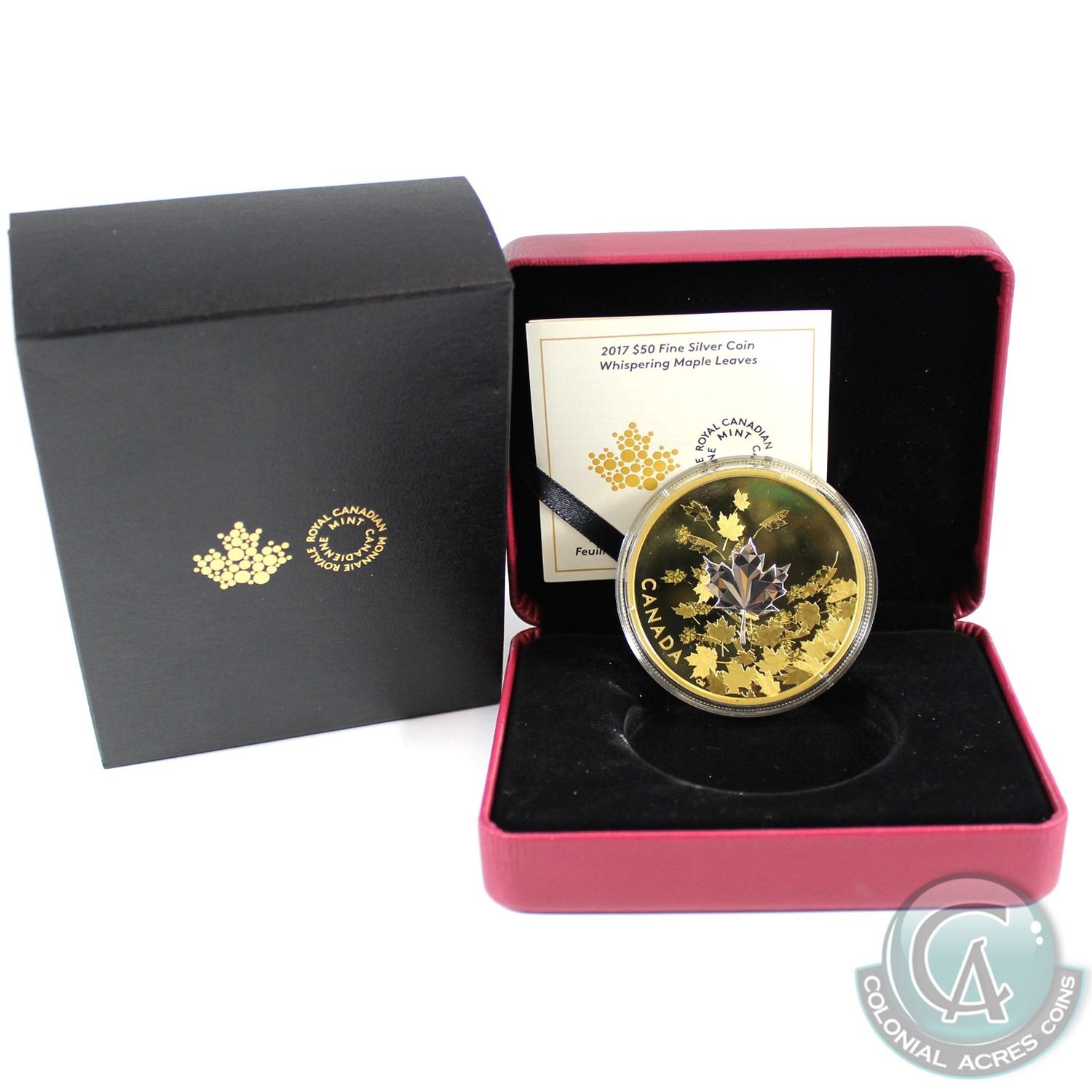 2017 Canada $50 Whispering Maple Leaves Gold Plated 3oz. Fine Silver Coin (Tax Exempt). SOLD OUT AT THE MINT!