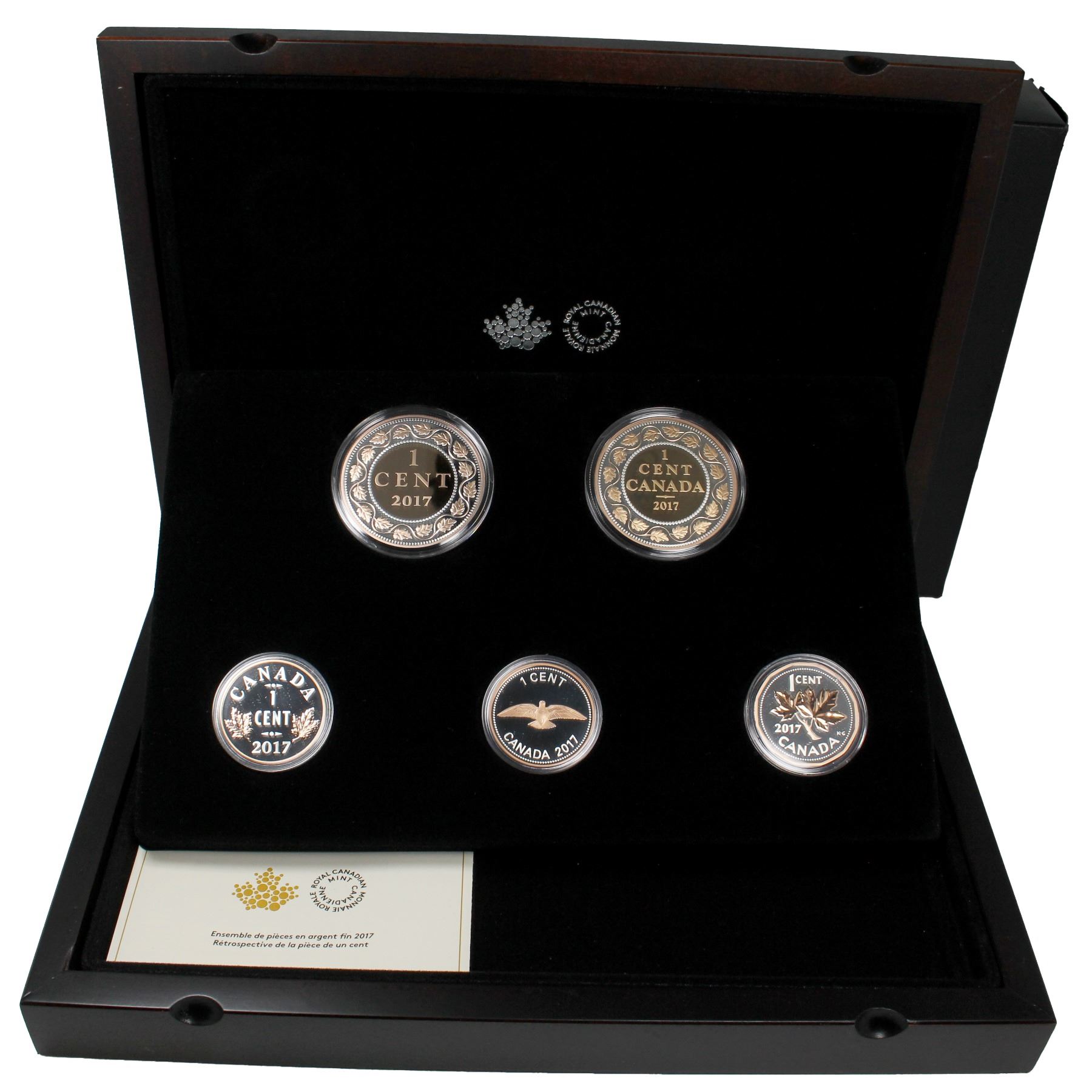 2017 Canada Legacy of the Penny 5-coin Fine Silver Set with selective rose gold plating(Tax Exempt). 3000 mintage. Coin contains all original mint packaging.