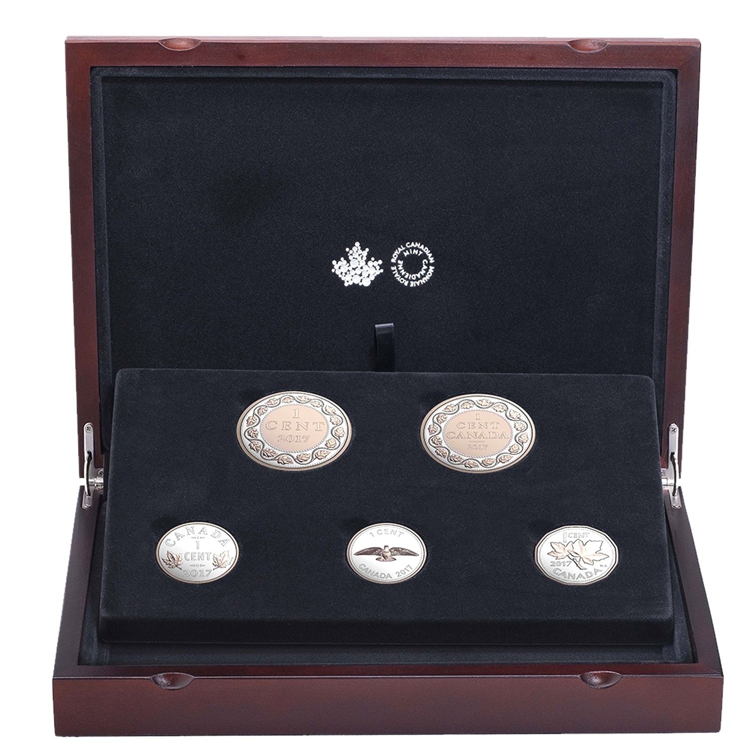 *2017 Canada Legacy of the Penny Fine Silver 5-coin Set (Capsules may be scratched, the 1967 dove design is toned & sleeve lightly bent). TAX Exempt