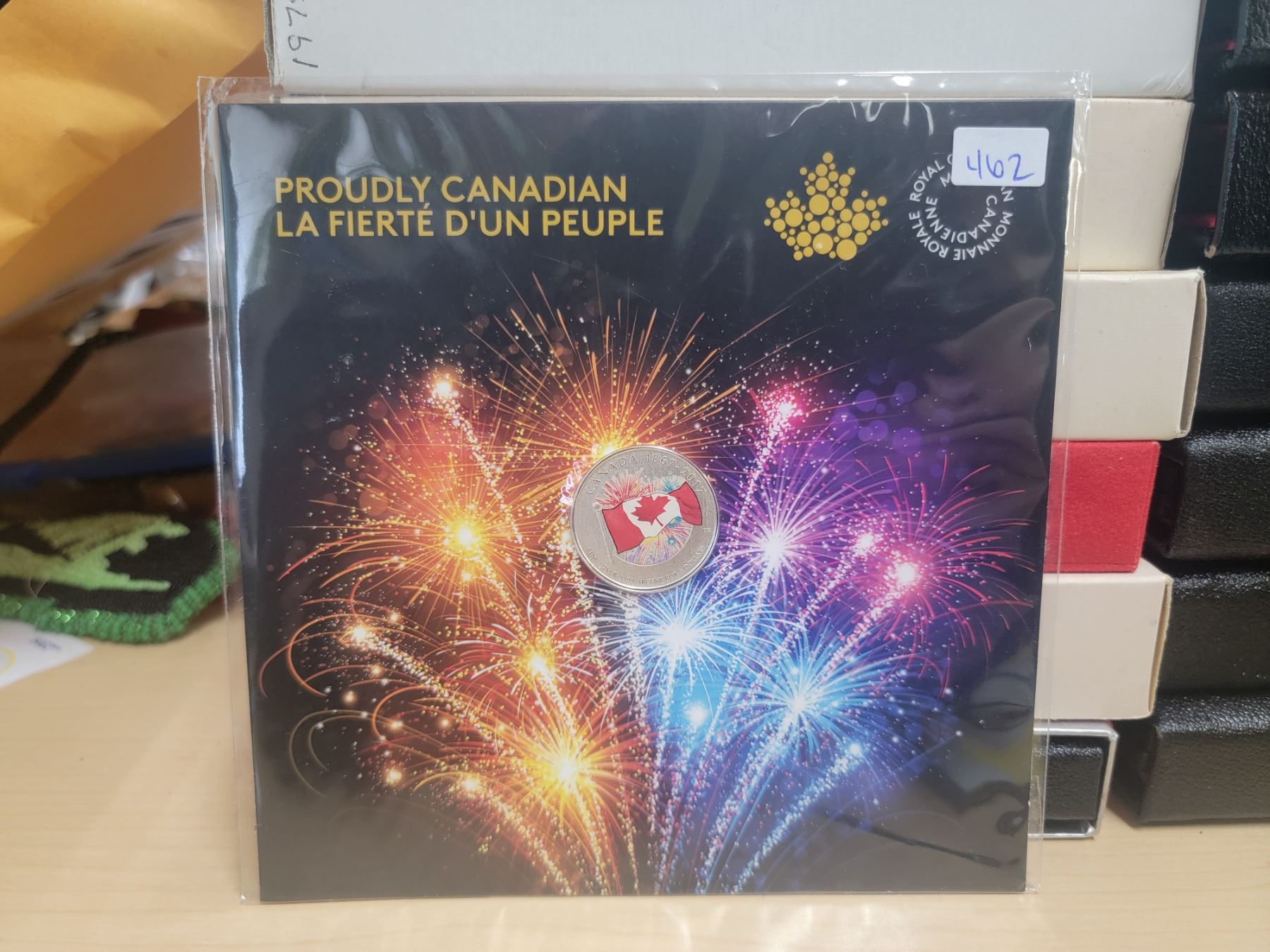 2017 Canada 'Proudly Canadian' $5 Fine Silver Coin (colored Flag & Fireworks), unopened
