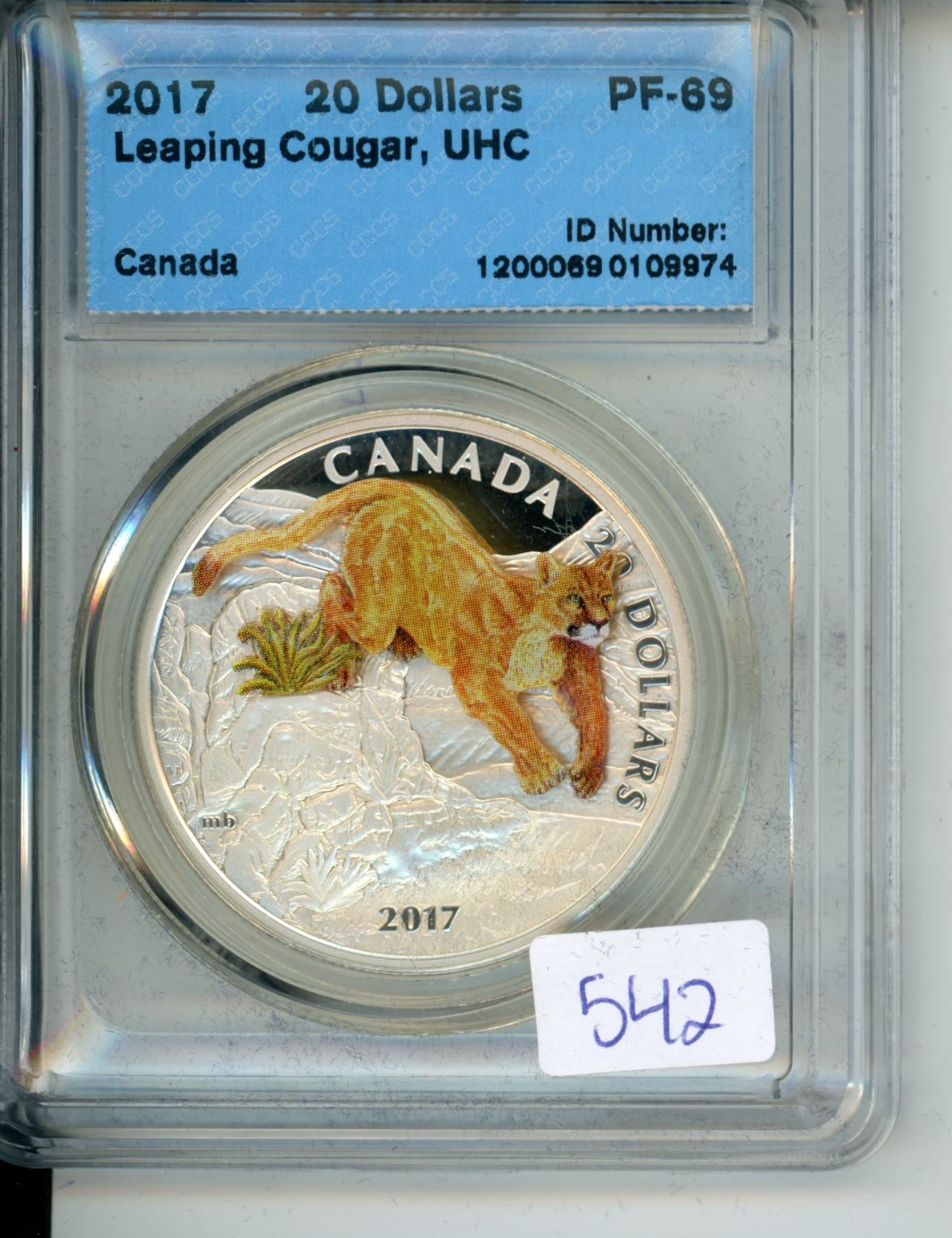 2017 Canadian CCCS Graded 20 Dollar Coin - PF-69, Leaping Cougar, UHC