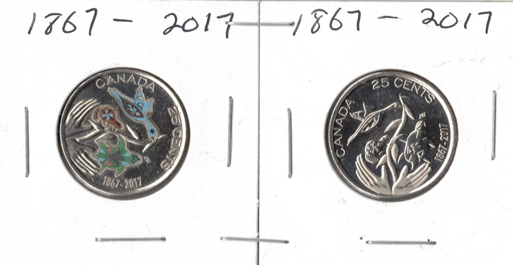 2017 Canadian Quarter - Canada 150 - Coloured and Uncoloured