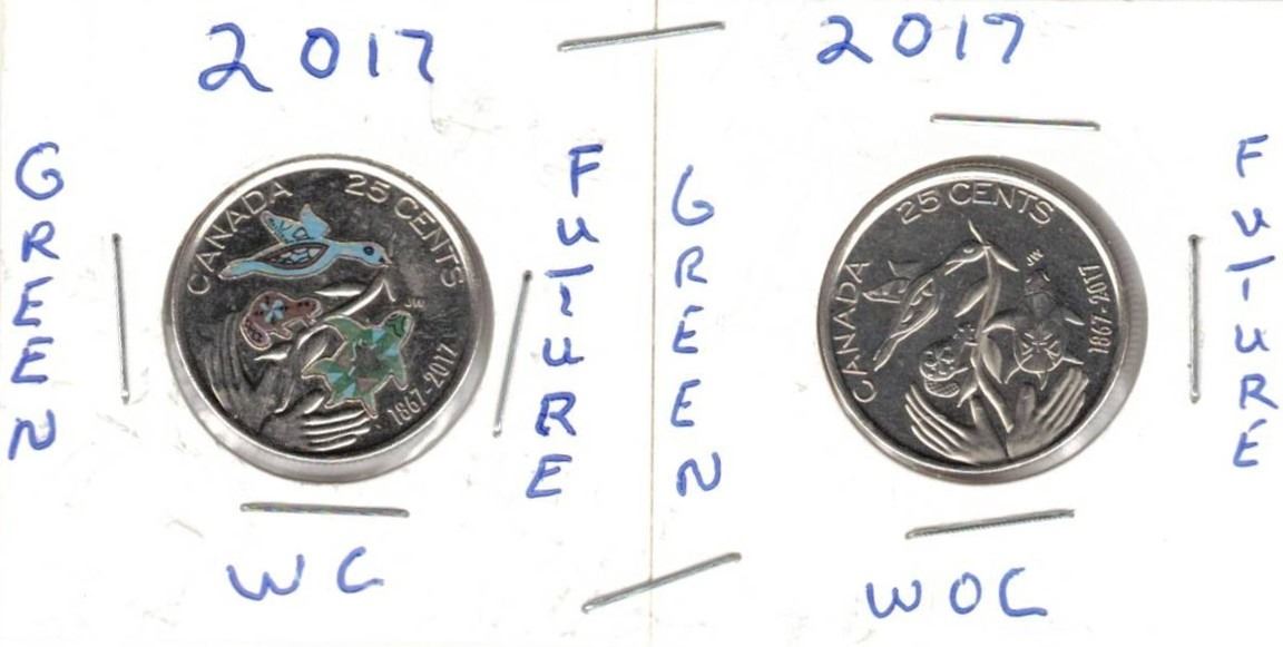 2017 Canadian Quarters, Green Future With Colour and Without Colour